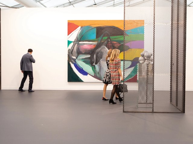 Michaël Borremans's Fire from the Sun (Two Figures, One Hand) (2017), David Zwirner, Frieze London: This painting by the Belgian artist Michaël Borremans will make you want to curl up in a ball and weep. The work shows a naked toddler, missing an arm and covered in what looks like blood. “When you are looking at the subject matter depicted in the painting, you immediately look at the materiality of the painting: are you looking at blood, or are you looking at paint?” says the gallery’s senior partner, Hanna Schouwink. It is difficult to concentrate on the weight of the artist’s brushstrokes when such a scene is staring you in the face. © Michaël Borremans; Courtesy of the artist and David Zwirner