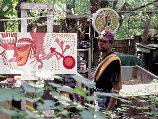 Works by Bill Traylor are shown in dialogue with those of Robert Rauschenberg, around the aesthetic of discarded cardboard and recycled materials. A Lonnie Holley diorama converses with a Joseph Cornell box and a Roger Brown painting in a section about still-life as a portal for exchange between self-taught and avant-garde artists.