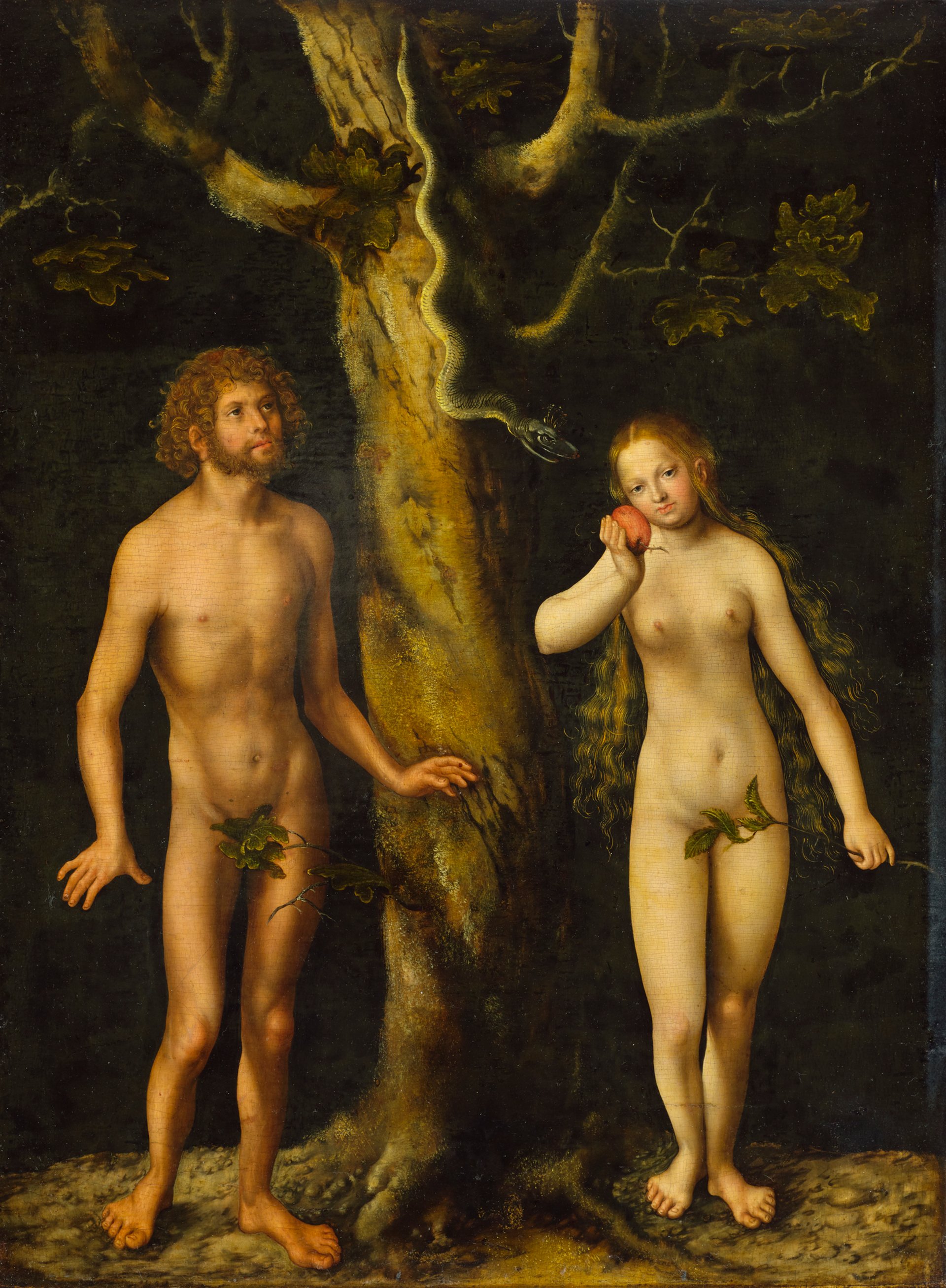 Lucas Cranach the Elder, The Temptation of Adam and Eve (about 1510) Image courtesy of the Muzeum Narodowego w Warszawie