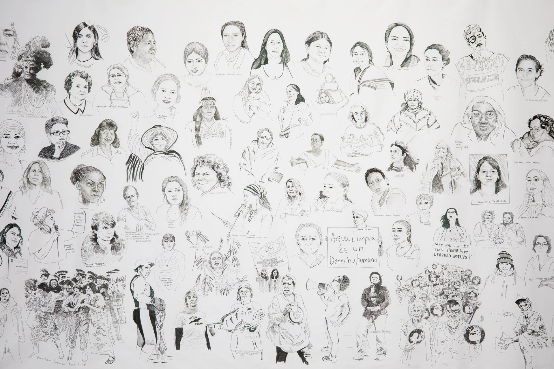 My pick is Carolina Caycedo’s new work, which is titled My Feminine Lineage of Environmental Struggle (2018). This work was made specially for the exhibition and gathers the portraits of over 100 women eco activists. This work is very significant for the exhibition as it traces the important role women have played in resistance movements against the destruction of the environment and for the right to access to land and natural resources by indigenous and local communities across the world. It also highlights the violent opposition eco activists are subjected to by large corporations, governments and other oppressive bodies. Many of these women have been incarcerated, assassinated or live under threats.