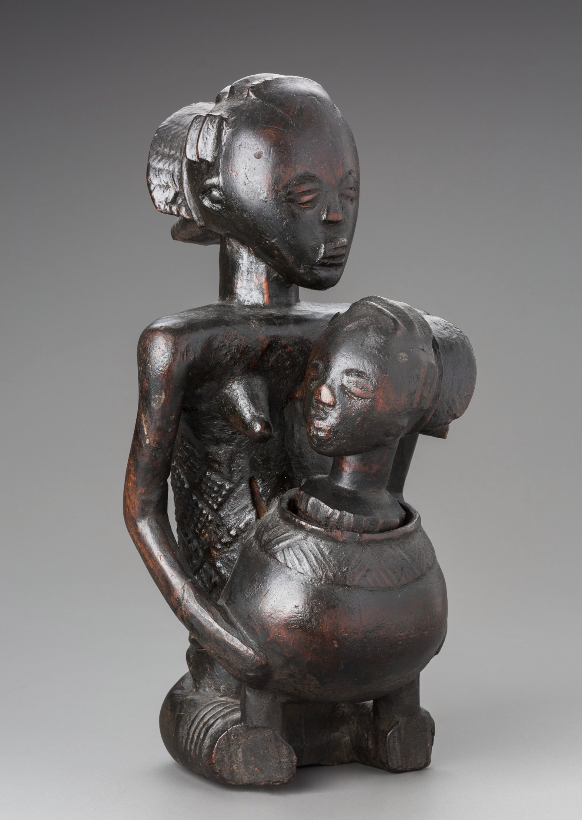 An African wooden sculpture of a woman holding a bowl with a child, 18th century, Mwanza workshop Margaret Demant Bequest, Detroit Institute of Arts
