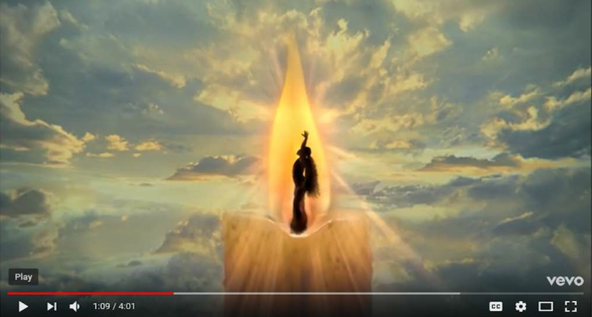 The Las Vegas-based “metaphorical-realism” artist filed the action in Nevada shortly after learning about the scene in a listicle breaking down the symbolism of the music video (published by the pop culture blog PopSugar). In the complaint, he claims that the scene where Grande is shown dancing inside a candle flame against a background of clouds is identical to his paintings The Candle and The Candle 2, both made around two decades ago.