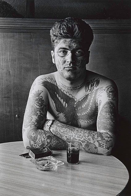 “She followed me all over the damn place,” recounts the late Jack “Dracula” Baker in an interview decades after he became one of the many striking subjects of the US photographer Diane Arbus (1923-71). After a morning shoot in the bar that produced the photograph, titled Jack Dracula at a bar, New London, Conn. 1961, Arbus took her subject to lunch and spent the rest of the day with him.