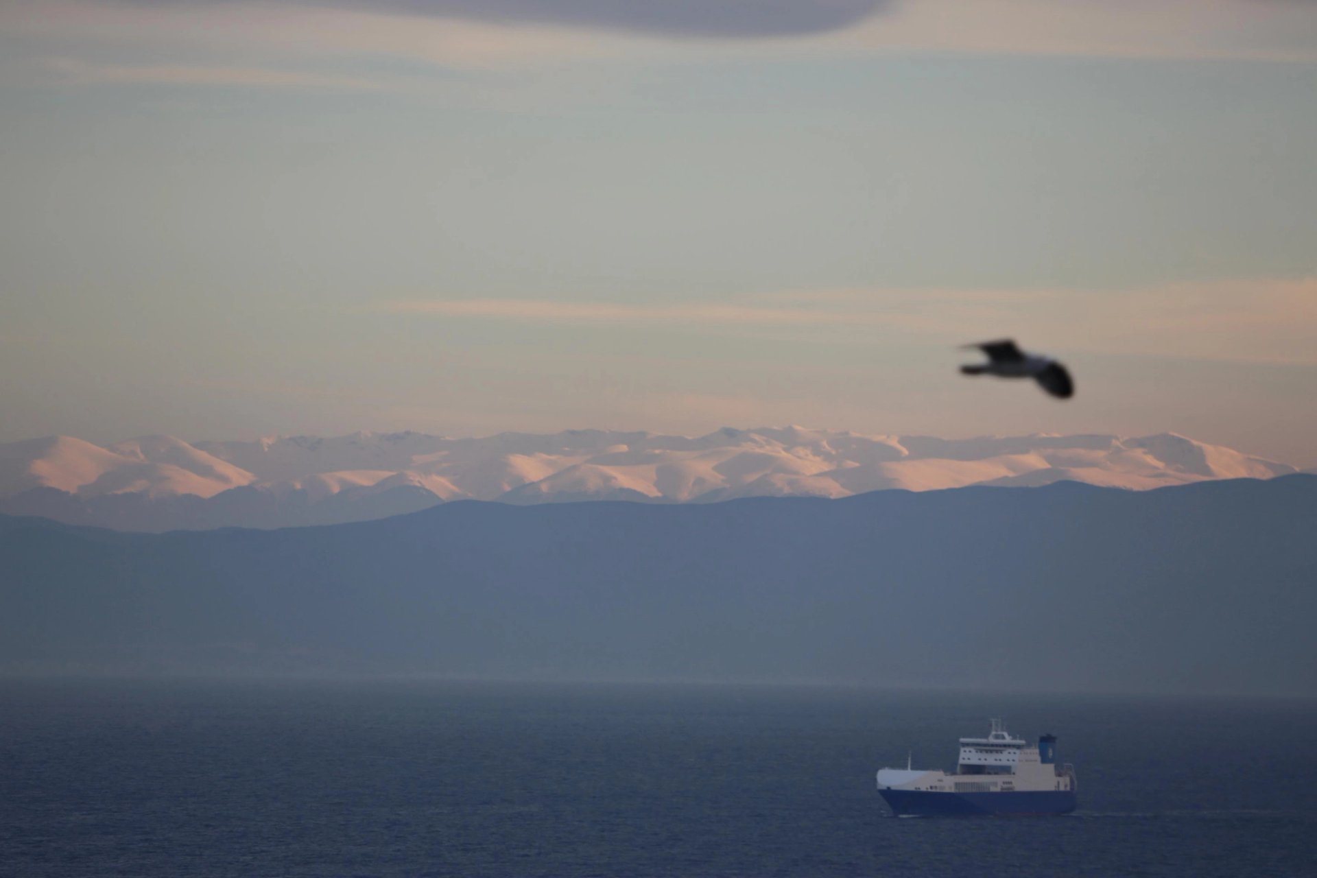 From a lofty distance, Pamuk’s telephoto lens only occasionally turns to the forces disfiguring an 8,000-year-old skyline. In one image, a bird perches atop the finial of a mosque's dome, while construction cranes loom next to boxy skyscrapers in the backdrop. In almost every picture is water, foiling Pamuk’s obsession with making permanent the ephemeral. Yet he tries, including bursts taken microseconds apart to show incremental differences in the wake of a ferry or a seagull’s flightpath.