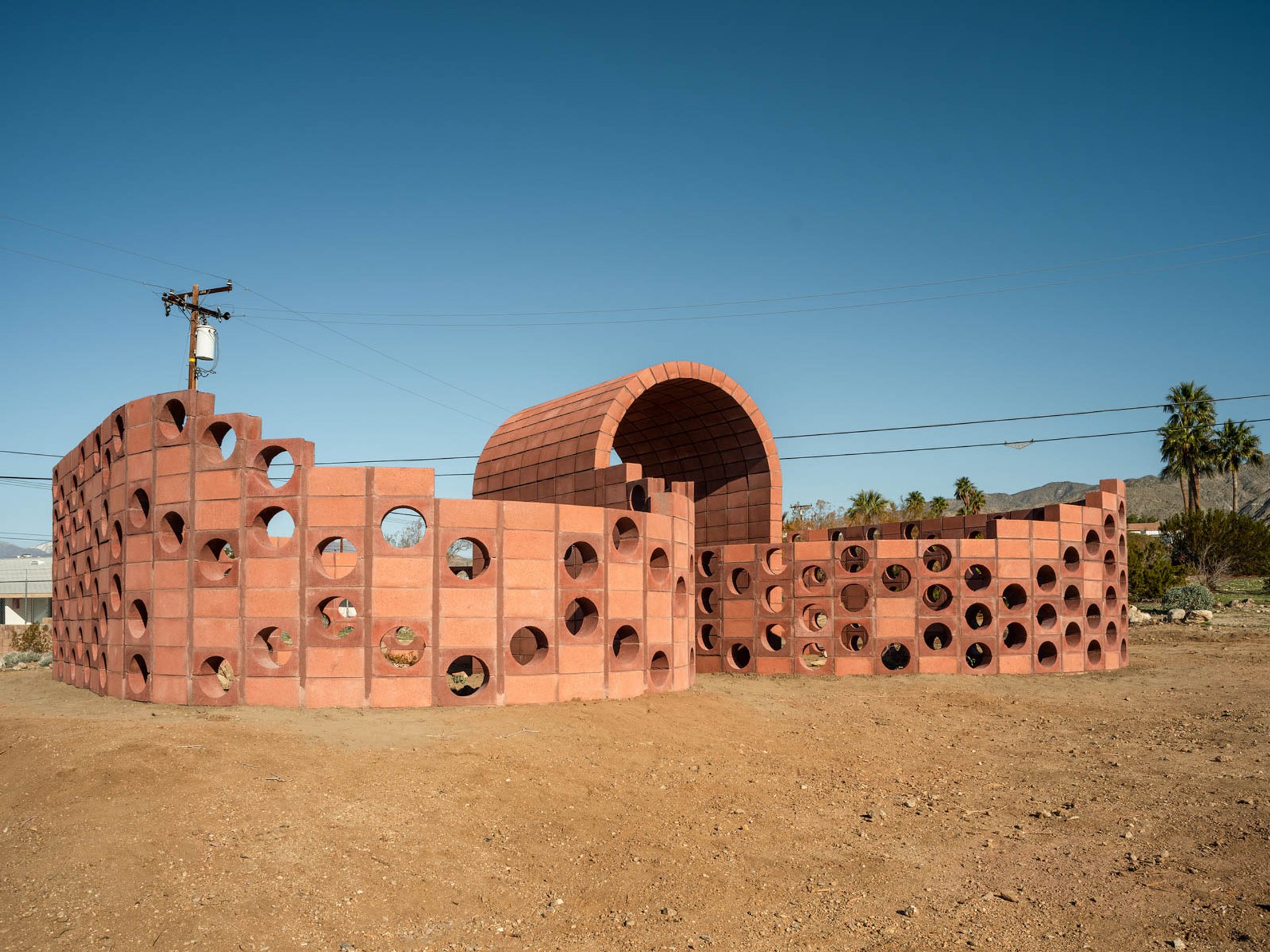 Julian Hoeber’s Going Nowhere Pavilion #01, in Desert Hot Springs, is a mind-bending building made of perforated bricks that works as an architectural Möbius strip. The work doubles upon itself like a person aware of herself thinking, and as you walk along the curves you have the disorienting feeling of not knowing what it is, or what it is for. “I tell architects it’s sculpture, and I tell sculptors it’s architecture, so they don’t bring their own stuff to it,” the artist says.