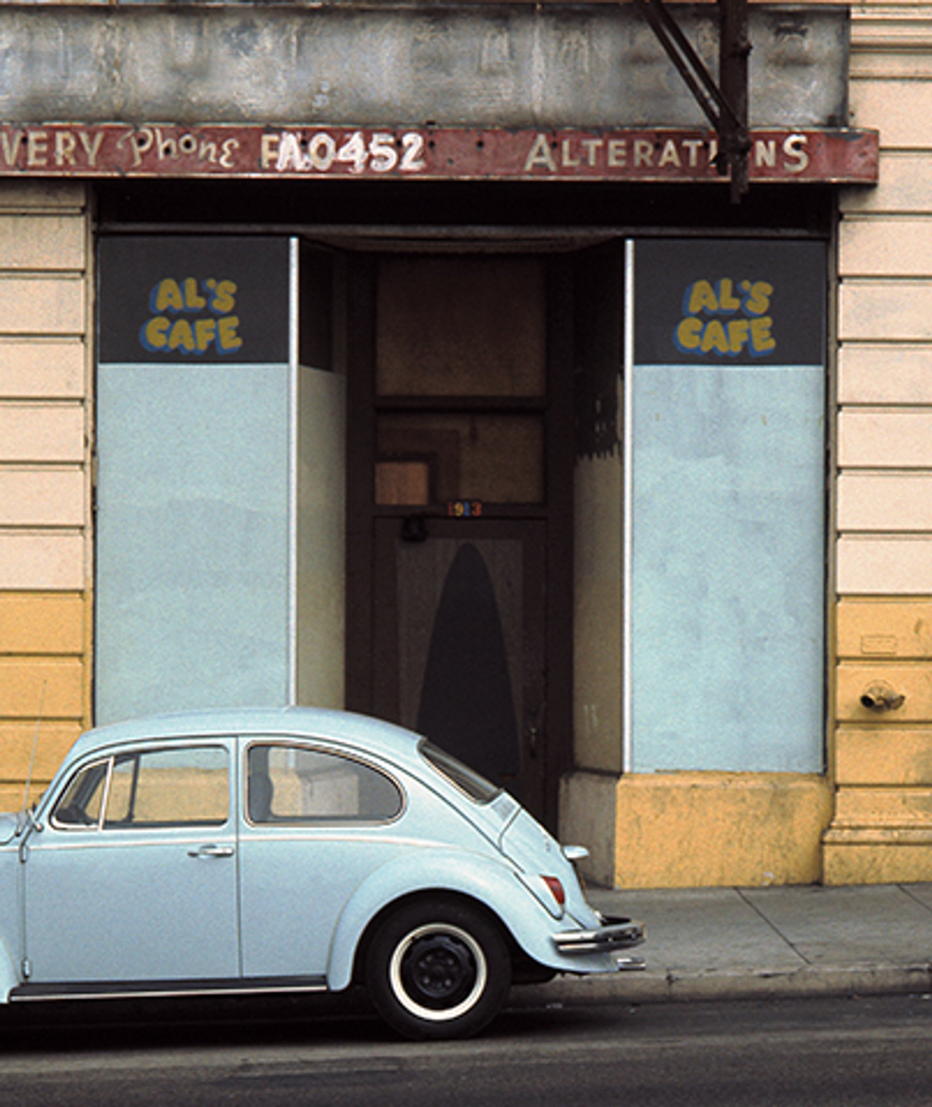 Allen Ruppersberg's Street view and façade of Al's Café at 1913 West 6th Street, Los Angeles (1969) Courtesy of the artist, Greene Naftali, New York and Marc Selwyn Fine Art, Los Angeles; Photo: Gary Krueger.