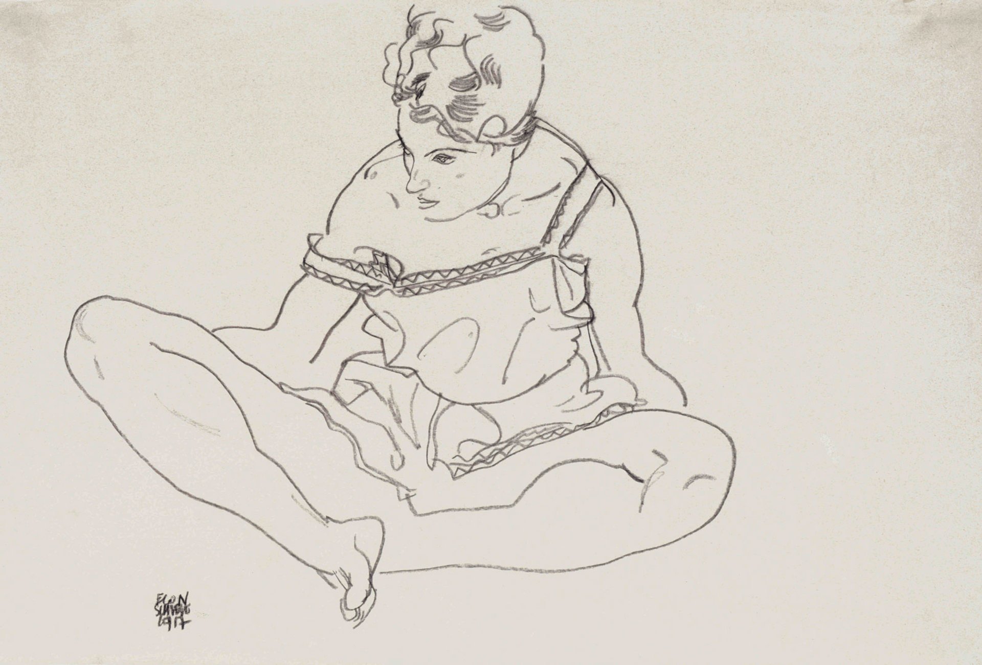 Adele (Seated Woman with Crossed Legs, 1917), a crayon on paper by Egon Schiele, is on sale for €480,000 at Richard Nagy. ©Private Collection; Courtesy Richard Nagy Ltd.