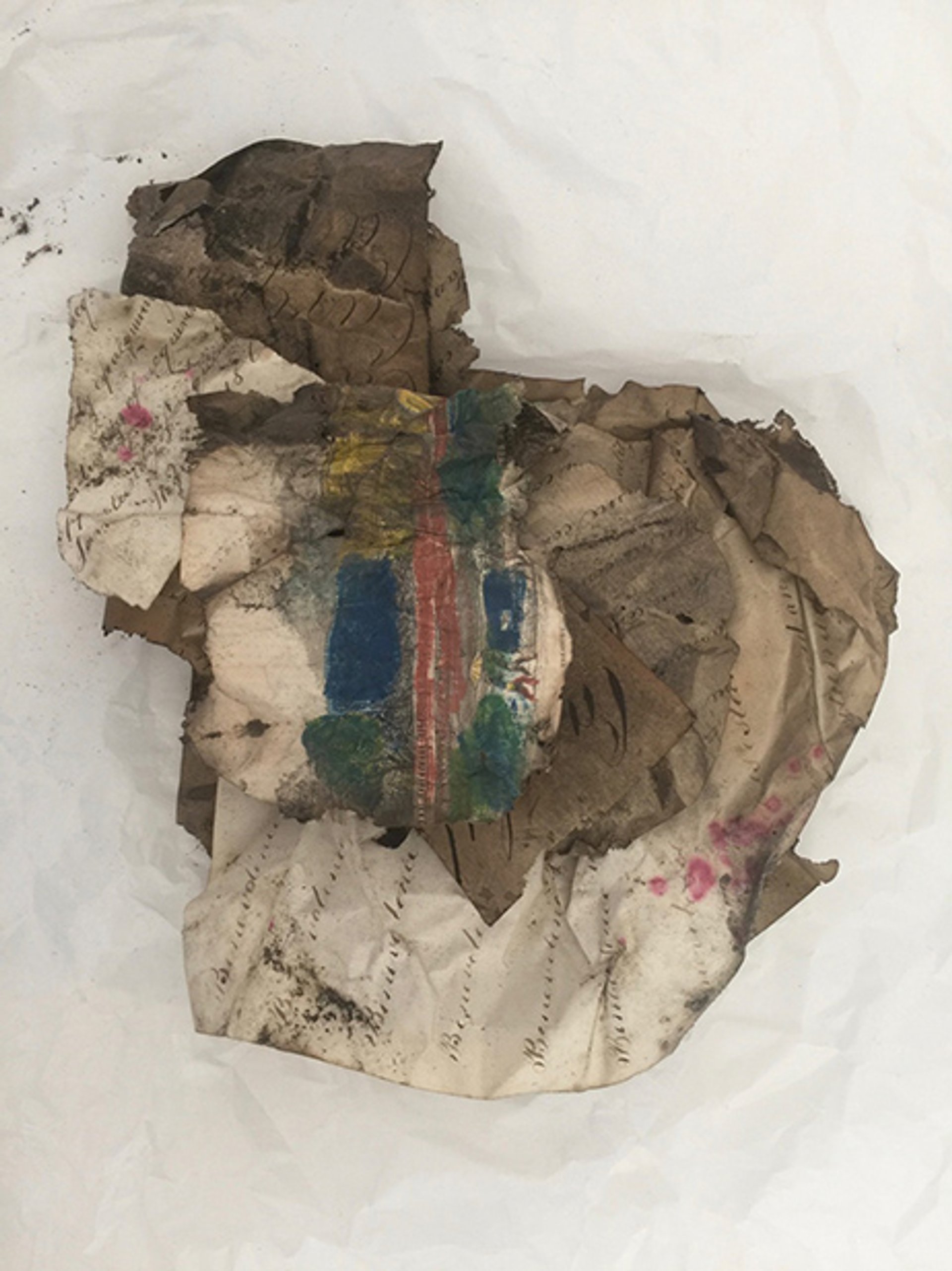 Along with the scraps of watercolour flowers was a scrunched-up ball of documents. These brittle papers are extremely fragile and the Wangs are waiting for conservators from the Camberwell College of Arts to carefully separate them. The fact that a whole wad was under the floorboards, rather than a loose sheet or two, suggests that they were important documents which had been deliberately hidden for safekeeping, rather than papers which fell through a crack. It is unlikely that any of Van Gogh’s papers ended up there, but when the documents are deciphered they may tell us more about his landlady.