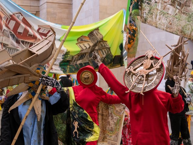 Nelson has also built partitions from wood salvaged from army barracks in Shrewsbury, and there are relics from agriculture, wooden telegraph poles and graffitied sheeting from a redeveloped housing estate in south London, as well as doors sourced from a National Health Service hospital in London’s Bolsover Street. The military, the NHS, farming, communications and social housing are therefore all embedded in the fabric of the work, further enriching its role as a monument to a more optimistic post-war Britain with a welfare state and aspirations for social equality that is all but vanished today.
