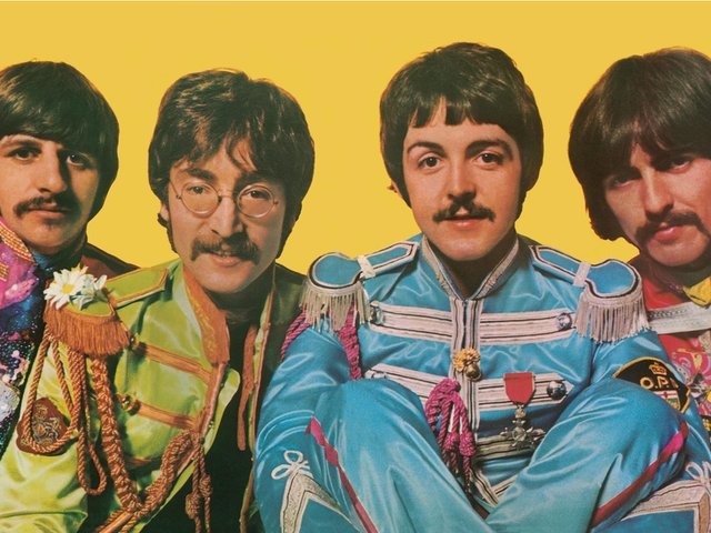 The work is, apparently, a complex layered parody. Here KAWS—or Brian to his friends—has taken The Yellow Album, The Simpson’s recreation of the Beatles’ album cover for Sgt. Pepper’s Lonely Hearts Club Band, and replaced the cartoon characters with his own “Kimpsons” characters, with Xs for eyes. All very clever.