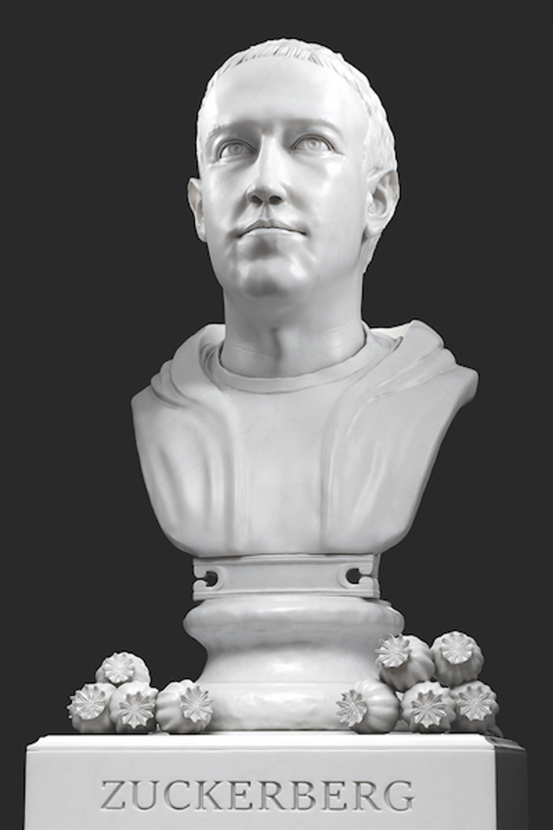 Ye gods! Those titans of technology—Elon Musk, Steve Jobs and Mark Zuckerberg—are presented as prophets, Greek deities and Roman emperors in a new show due to launch on 1 May at the Elizabeth Collective event space in midtown Manhattan (The Beginning of the End, until 24 May). These headline-hitting entrepreneurs have been turned into sculpted mythological figures by the Chilean artist Sebastian ErraZuriz, whose work is a caustic commentary on the impact of technology. Musk is portrayed as a winged messenger wearing a helmet emblazoned with the motif of his rocket company, SpaceX. But Zuckerberg, depicted in the style of a Roman bust (right), really stands out, looking no less like an all-conquering millennial Julius Caesar. All hail the Emperor of Facebook.