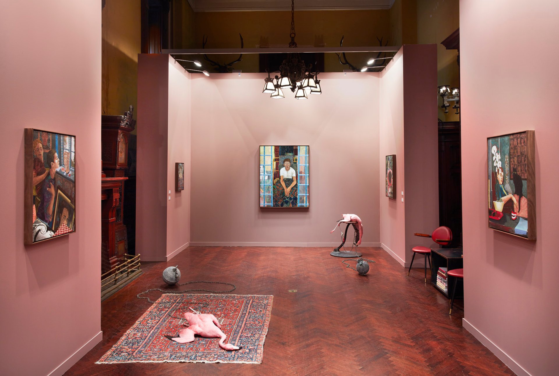 However, most of the seven Hernan Bas paintings within Lehmann Maupin’s fun “flamingo room” in one of the historic rooms were sold out by the end of preview day, with the remainder on reserve—all are priced in six figure sums, but the flamingo sculptures are still available.