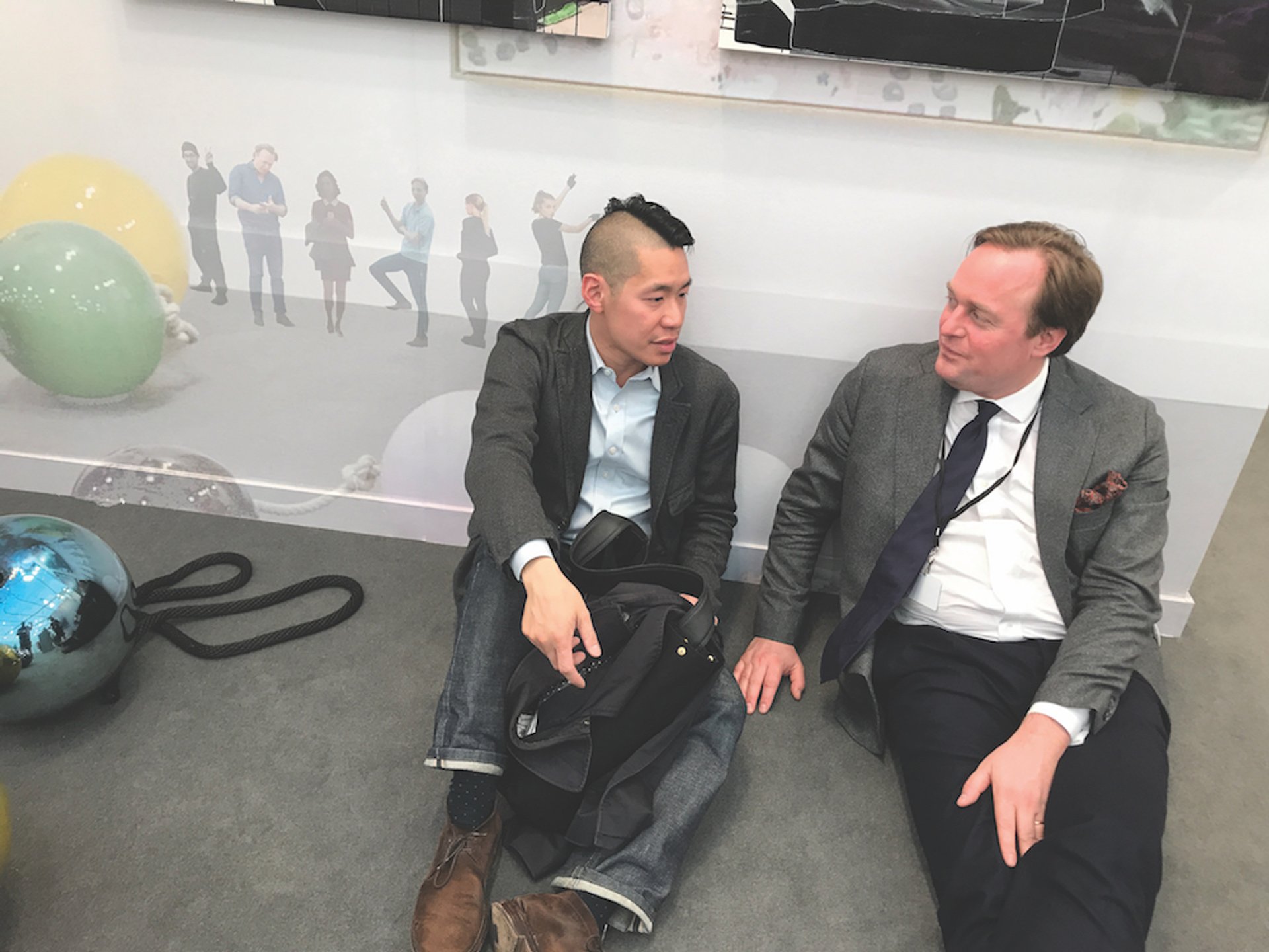 It’s always good to see the personal touch with fair stands, which is why we like Société gallery’s stand at Frieze New York. Eagle-eyed fairgoers will have noticed the jaunty image of the gallery staff emblazoned across one of the stand walls, a mural created by the gallery member Alicja Ewertowska. Team members depicted include the gallery’s founder, Daniel Wichelhaus, seen here lounging with Christopher Lew, a curator at the Whitney Museum of American Art.
