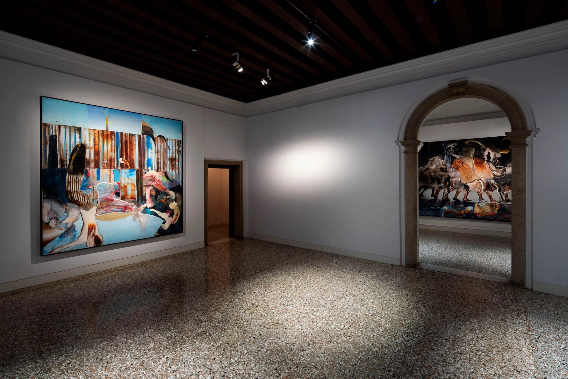 An installation shot of Adrian Ghenie's show at the Palazzo Cini in Venice Courtesy Galerie Thaddaeus Ropac, Paris, London, Salzburg; and Fondazione Giorgio Cini Onlus, Venice. Photo: Matteo Defina