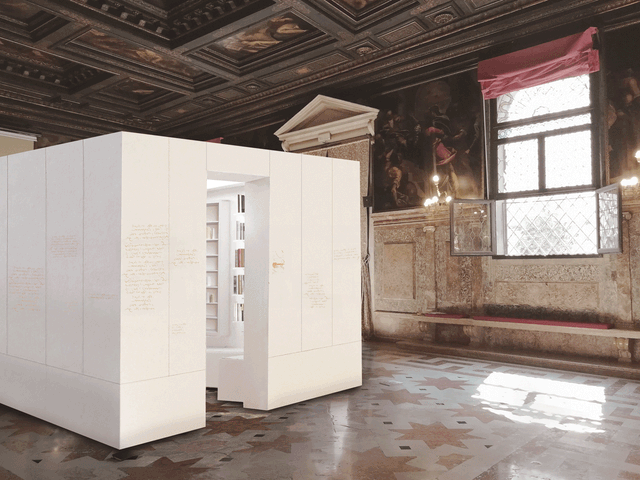 Visitors are encouraged to read and write in the books, most of which are in translation. De Waal has inscribed the names of lost libraries on the exterior of the specially built structure, which will be presented in Dresden from November to February 2020, followed by the British Museum. De Waal announced the news at a briefing today held by The Art Newspaper in Venice, saying that “for it to continue its travels to Dresden and then London is wonderful”.