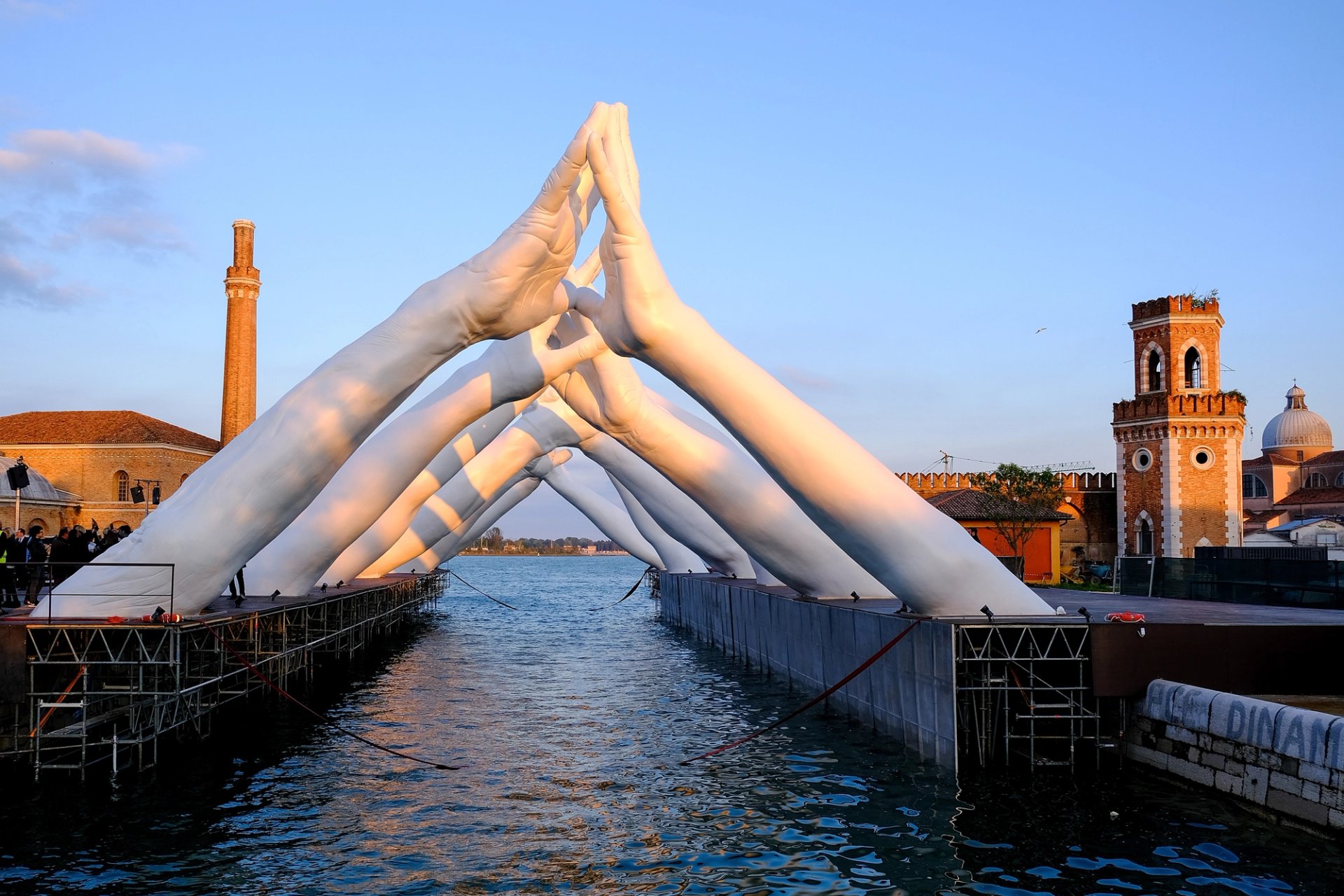 Lorenzo Quinn’s Building Bridges by Halcyon Gallery during the Venice Biennale 2019 Photo: David M. Benett/Dave Benett/Getty Images for Halcyon Art International