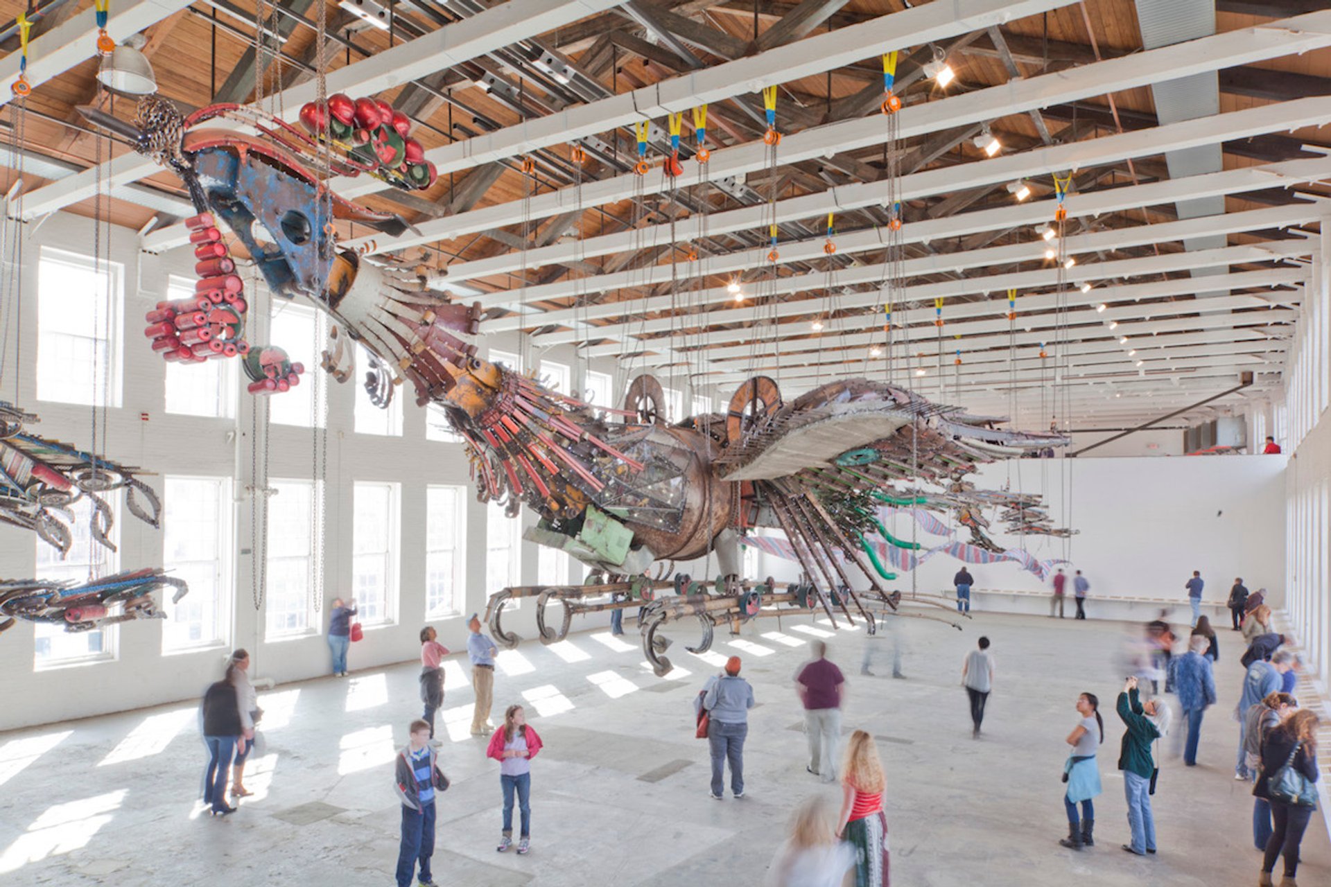 Installation shot of Xu Bing's Phoenix (2008-10) Courtesy of the Massachusetts Museum of Contemporary Art