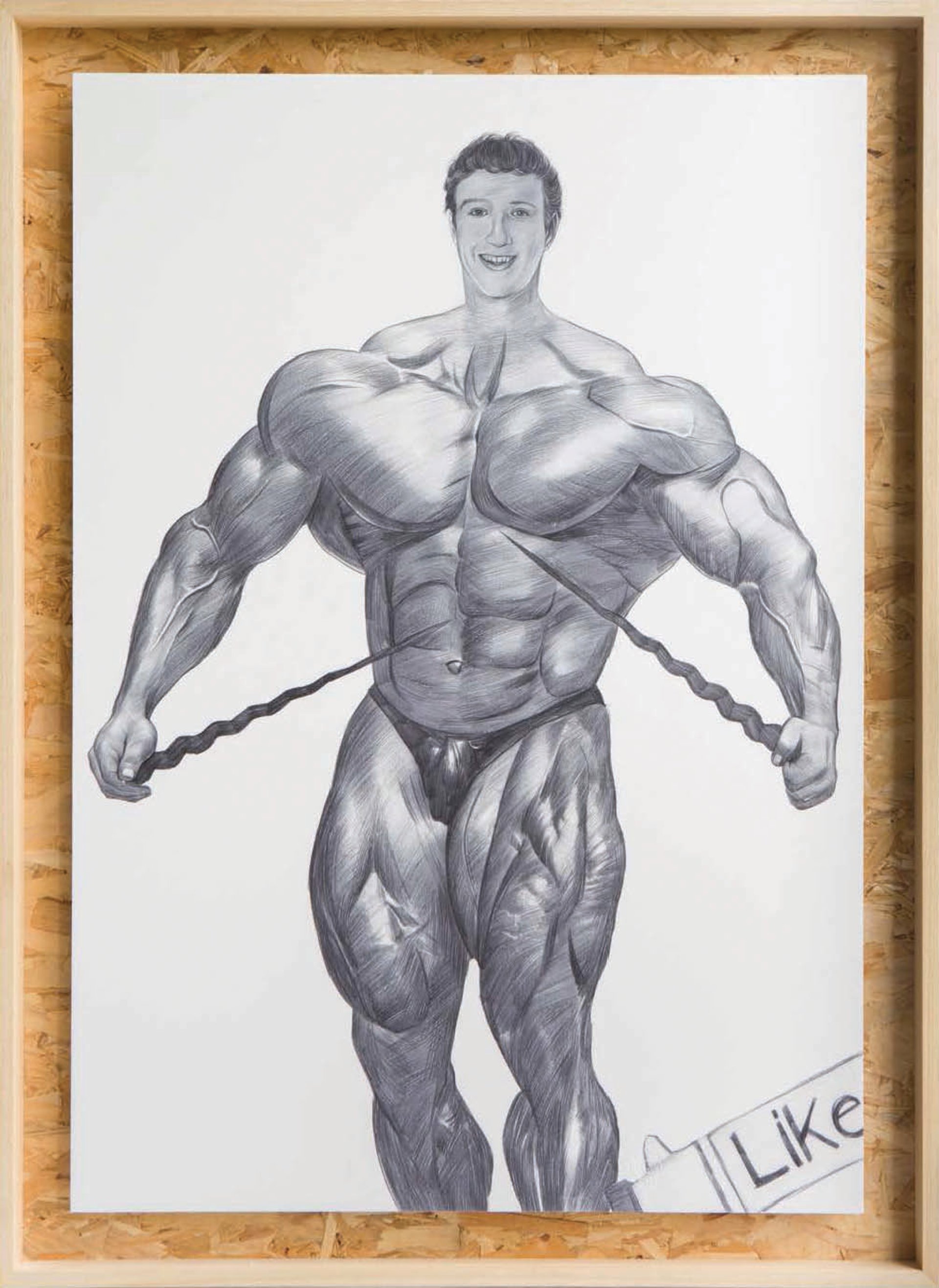 Fed up of Facebook? Tired of Twitter? Instagram making you feel like your life is worthless? Fear not, MadeIn Gallery’s stand at Liste has the answer: Hardcore Digital Detox (2018). The installation and website by the Chinese artist Miao Ying ironically offer an “online retreat for people who are addicted to the internet”, says the gallery director Alexia Dehaene. The artist suggests helpful ways of limiting your internet use, such as placing your VPN (virtual private network) in China, so that your browsing is subject to its Great Firewall. The undoubted star of the stand is a “selfie” of Facebook supremo Mark Zuckerberg as a buff bodybuilder clutching a couple of unicorn horns. Rather than reaching for your phone to snap a selfie, the work, Analog Art-Uni&hunk#6 (2018), encourages you to spend time drawing your better self, just like Zuck.