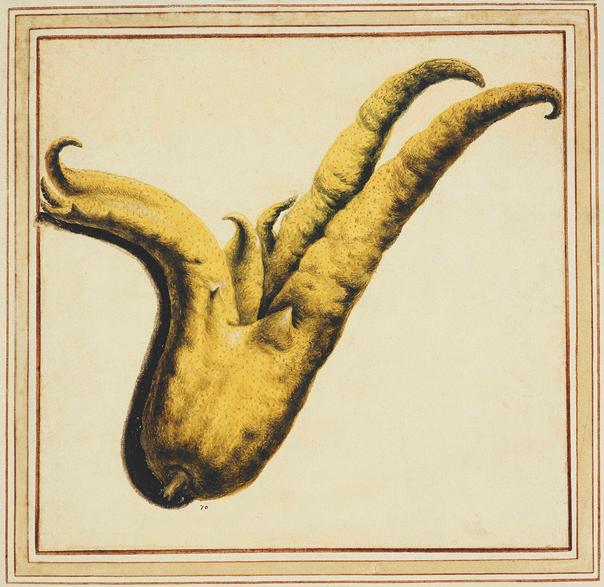 A theme running through the students’ design concerns the historic relationship of the church and the then new scientific discoveries, the contest between faith and science. The exhibition bears witness to the ambivalence of the church’s attitude insofar as the Accademia dei Lincei, to which practising and believing Catholics like Cassiano belonged, pursued scientific investigations without interference. What becomes clear to 21st-century eyes is that neither the church nor the scientists had a monopoly of the truth: the 17th-century scientific observations turn out to be as wonky as the church’s astronomy. The exhibition includes Cassiano’s L’Uccelleria, an illustrated treatise on birds, which he published pseudonymously (under the name of his friend, Giovanni Pietro Olina) as his reception piece for the Lincei in 1622. Drawings, many by Leonardi, of a pelican (1635), blackbird (around 1620), a porcupine (around 1630-40), a civet (around 1630), a bizarre “fingered lemon” (around 1640), a sloth (around 1626), drawings of stones, corals, fossils, and one of semi-precious stones and minerals (around 1630-40) for which the the university’s geological museum has provided 22 specimens for comparison.
