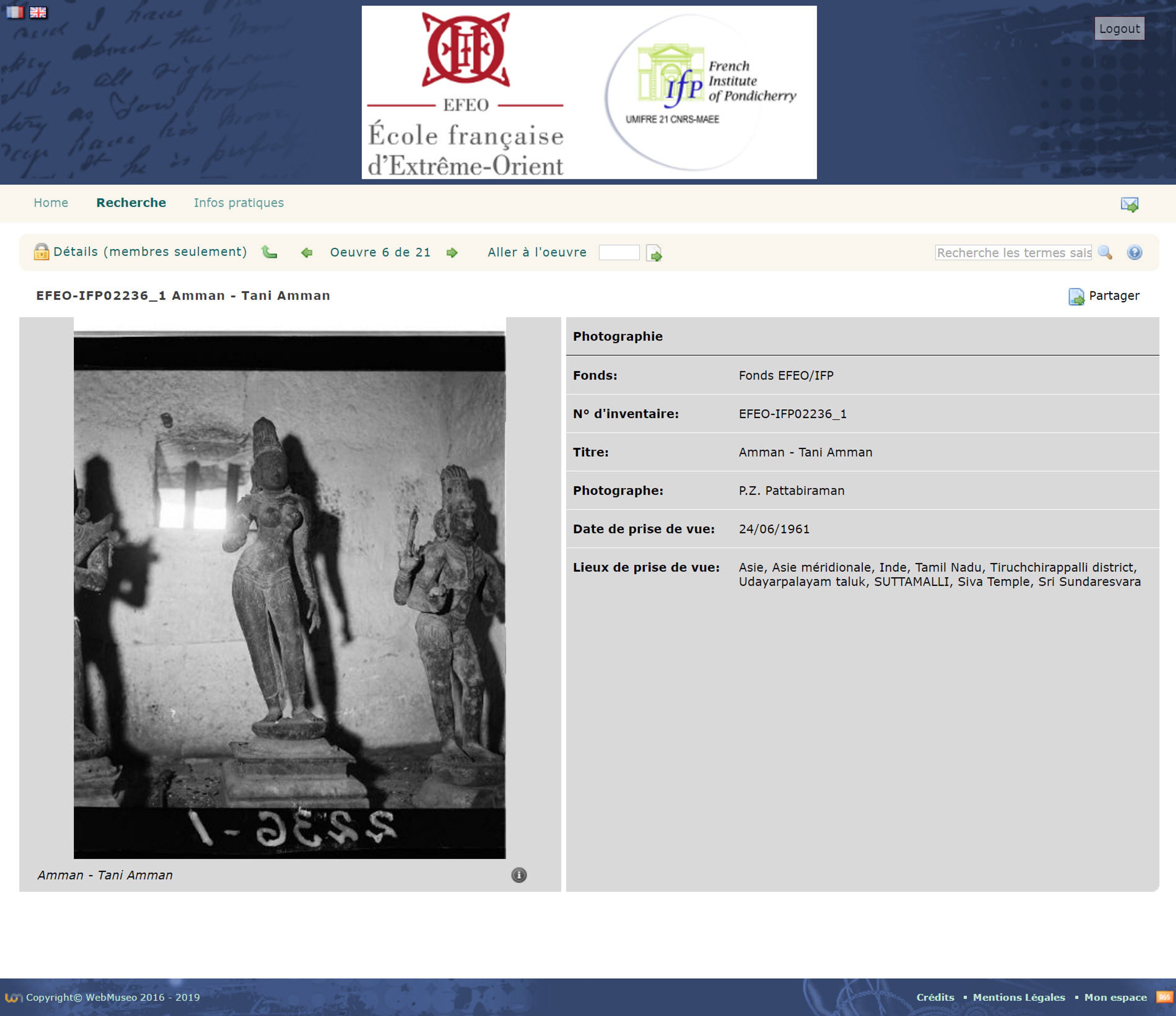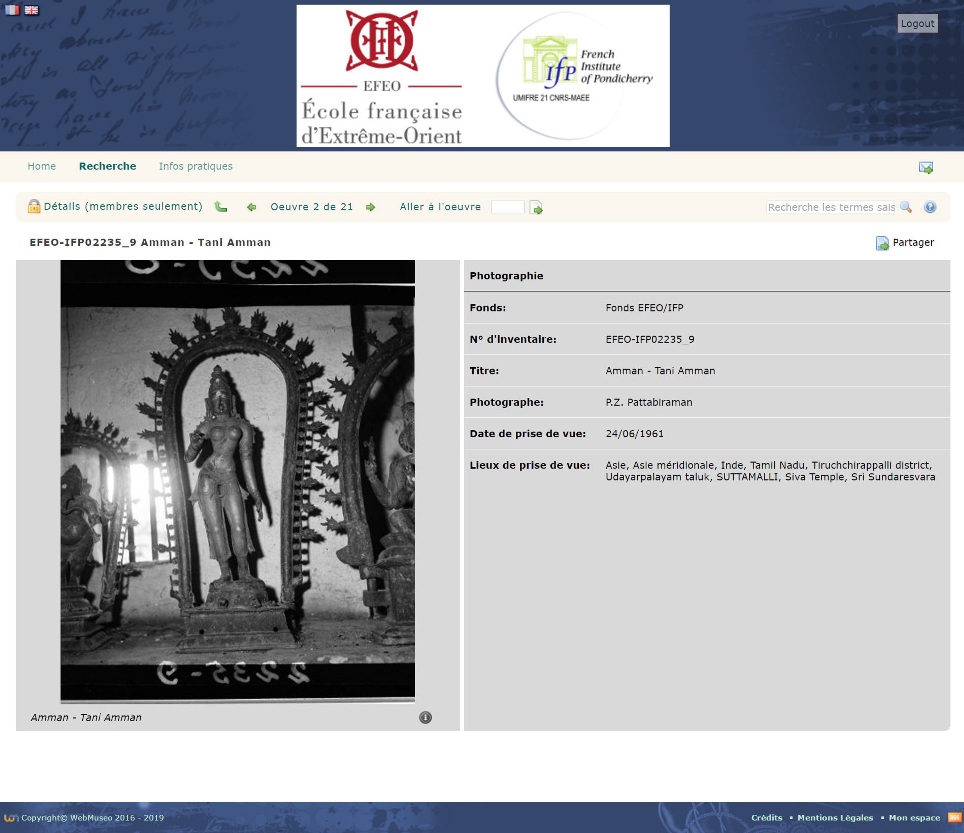 The French Pondicherry Institute's archive includes a photograph taken of the Shivagami Amman statue in the Siva Temple in Suttamalli Village, Tamil Nadu, India. According to a police report filed with the Idol Wing of the Tamil Nadu Police, five metal idols were amongst 18 total idols stolen from the Siva Temple. Authorities say that Kapoor's family members have concealed the works following previous seizures.