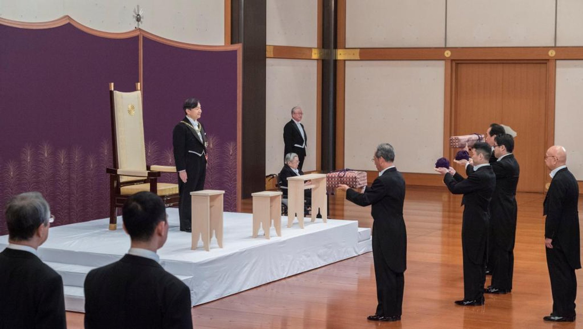 The Treasures of the Imperial Family are presented to Naruhito during the Emperor's enthronement in Tokyo on 1 May 2019 Photo: Imperial Household Agency of Japan