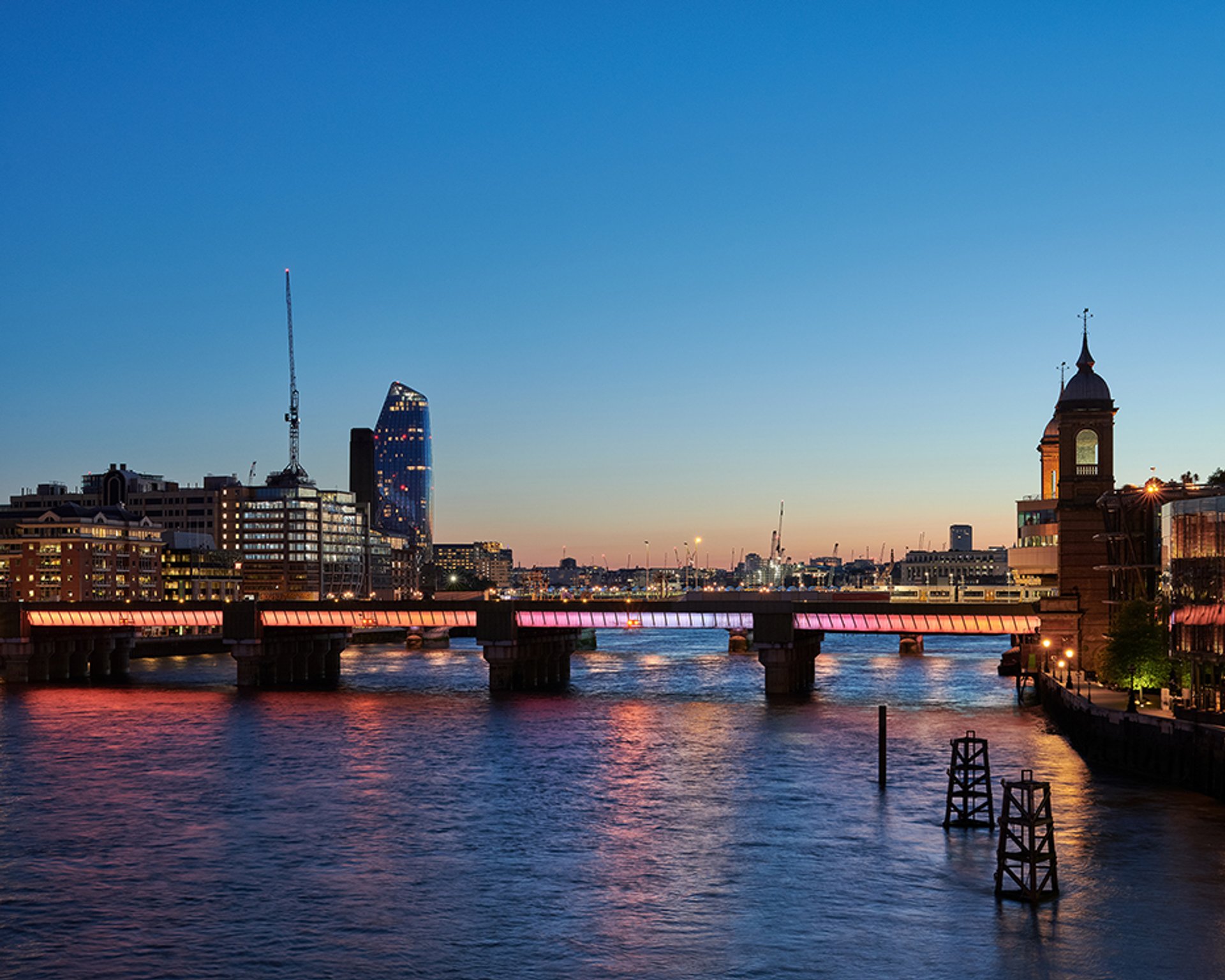 "Each bridge provided a unique challenge. With Southwark bridge in particular proving difficult due to the intricate and complex nature of its structural engineering. We put fixtures in the bottom of the bridge to reveal the stunning ironwork which was previously not given enough attention, it has allowed us to illuminate every rivet and detail." Villareal adds that the teal palette of the bridge's paintwork eventually worked its way into the colour of Southwark Bridge's light sequence.