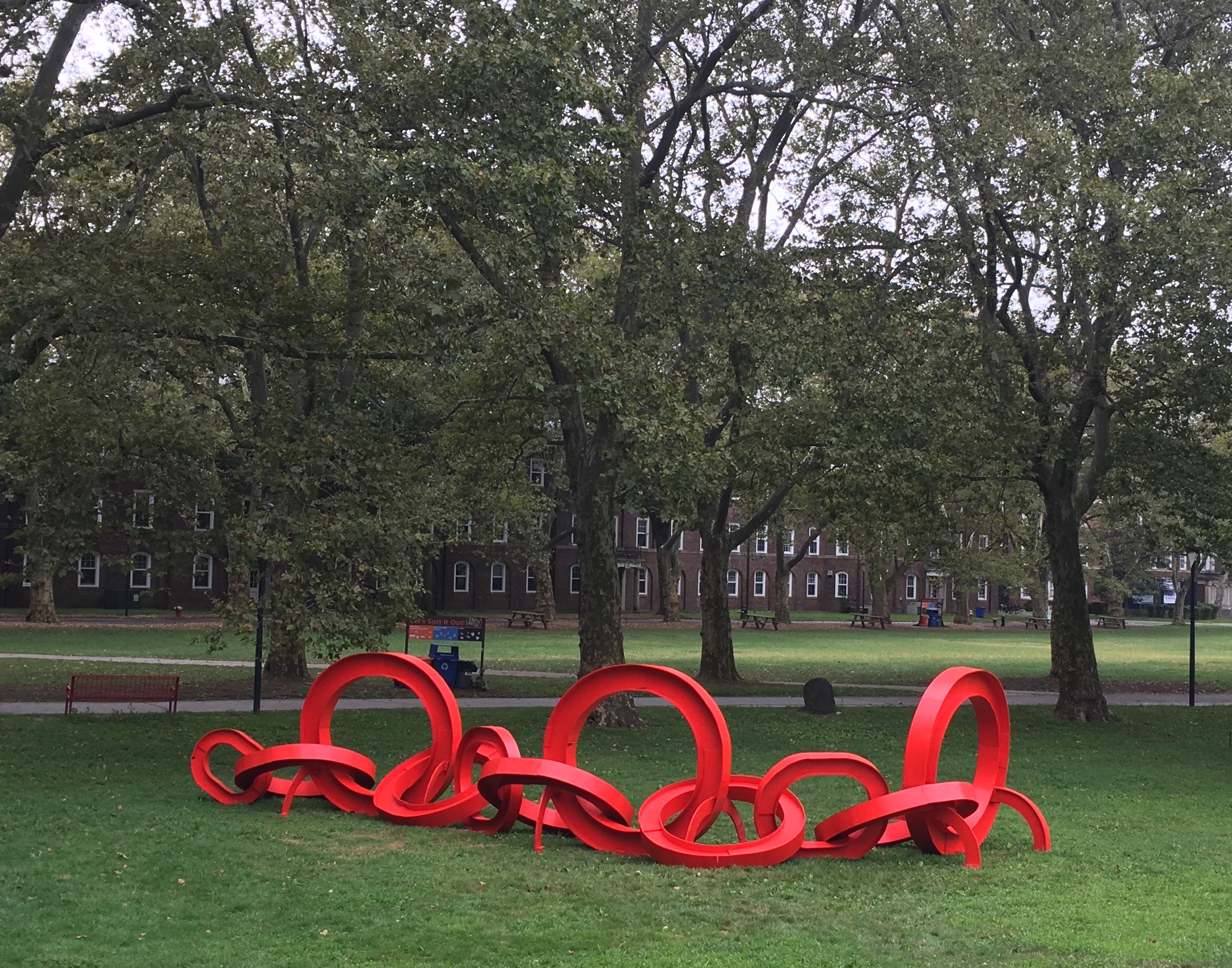 The New York-based artist, who has previously shown work at the New Museum and Socrates Sculpture Park in Queens, is inspired by Modernist sculpture of the 1970s, which she aims to “reinterpret with a feminine hand, as sculpture was traditionally—and remains today—seen as a masculine practice”, Buck says. This large-scale wooden work, comprising stacked and interlinked parts that resemble a mangled bracelet, is among 19 outdoor installations on the island in this edition of the fair. Miggy Buck, Rapunzel, 2019