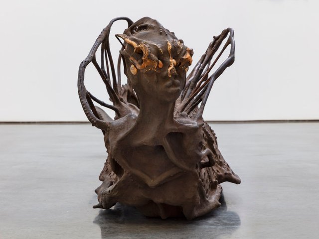 When you visit Phenomenal Nature: Mrinalini Mukherjee (until 29 September) at the Met Breuer, you will wonder why this is the first time the sculptor, who died in 2015 and was part of a generation of post-Independence Indian artists, has been given a major US career survey. You will also be astounded to know that Mukherjee, who initially trained as a painter, never did preparatory drawings for her sculptures. She made her fibre works with a labour-intensive knotting process, adding ceramic to her practice in the mid-1990s and then bronze. She was told that the lost-wax casting process would not allow for the details she wanted, says the show’s curator, Shanay Jhaveri, so she finished them with orthodontic tools. Mukerhjee's sensual works in organic forms that vary in abstraction and figuration, seem to play with positive and negative space and have a sexual charge with their phallic shapes and vulvar openings. They sometimes reference classical Indian sculpture, like the Night Bloom series in ceramic (1999-2000), which resemble seated women or goddesses, while many of the fibre works have blooming, symmetrical yonic forms. The large gallery has been divided by curves of drapery, with soft cream-coloured carpeting quieting the stone floors, giving a reverential hush to the show.