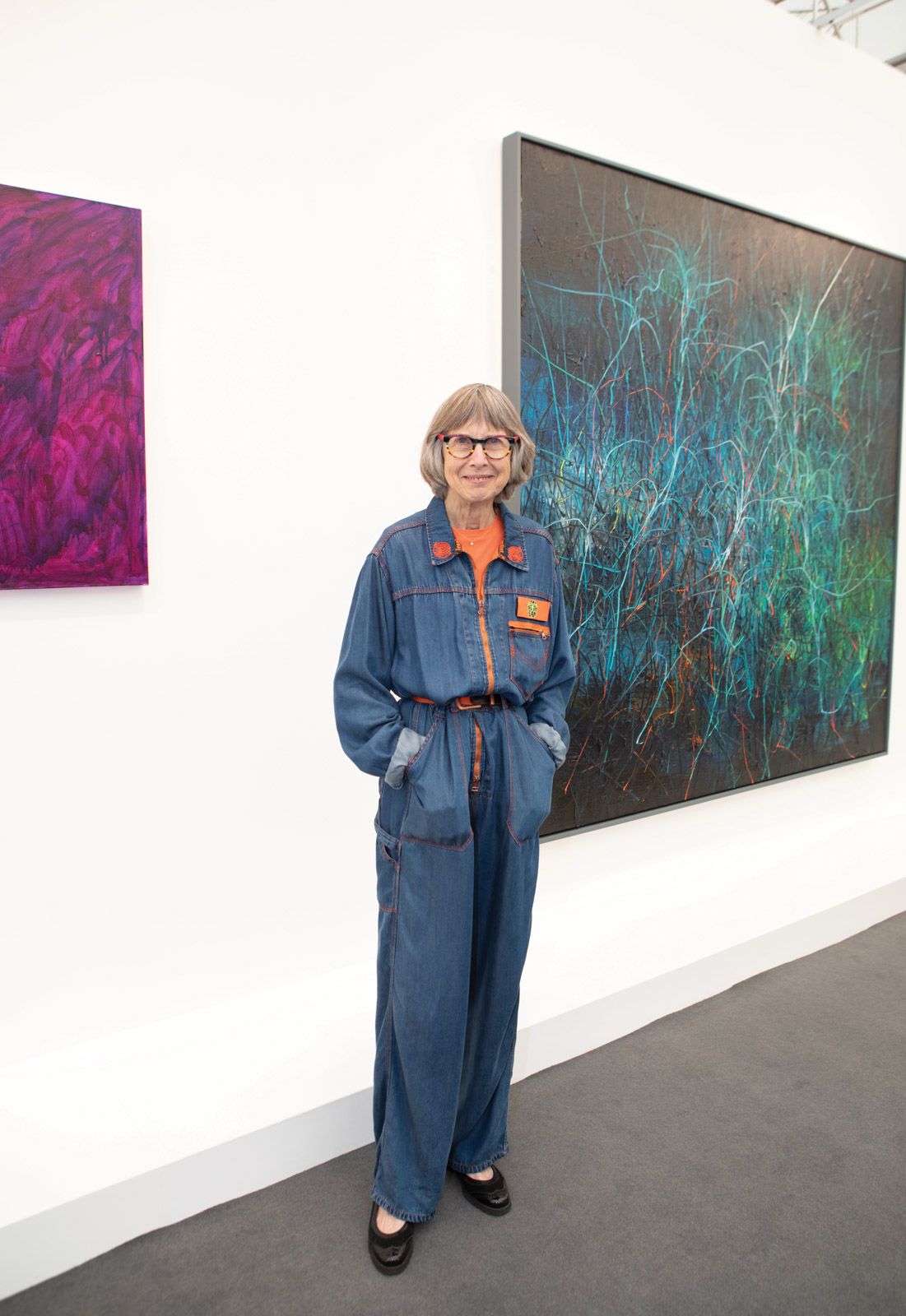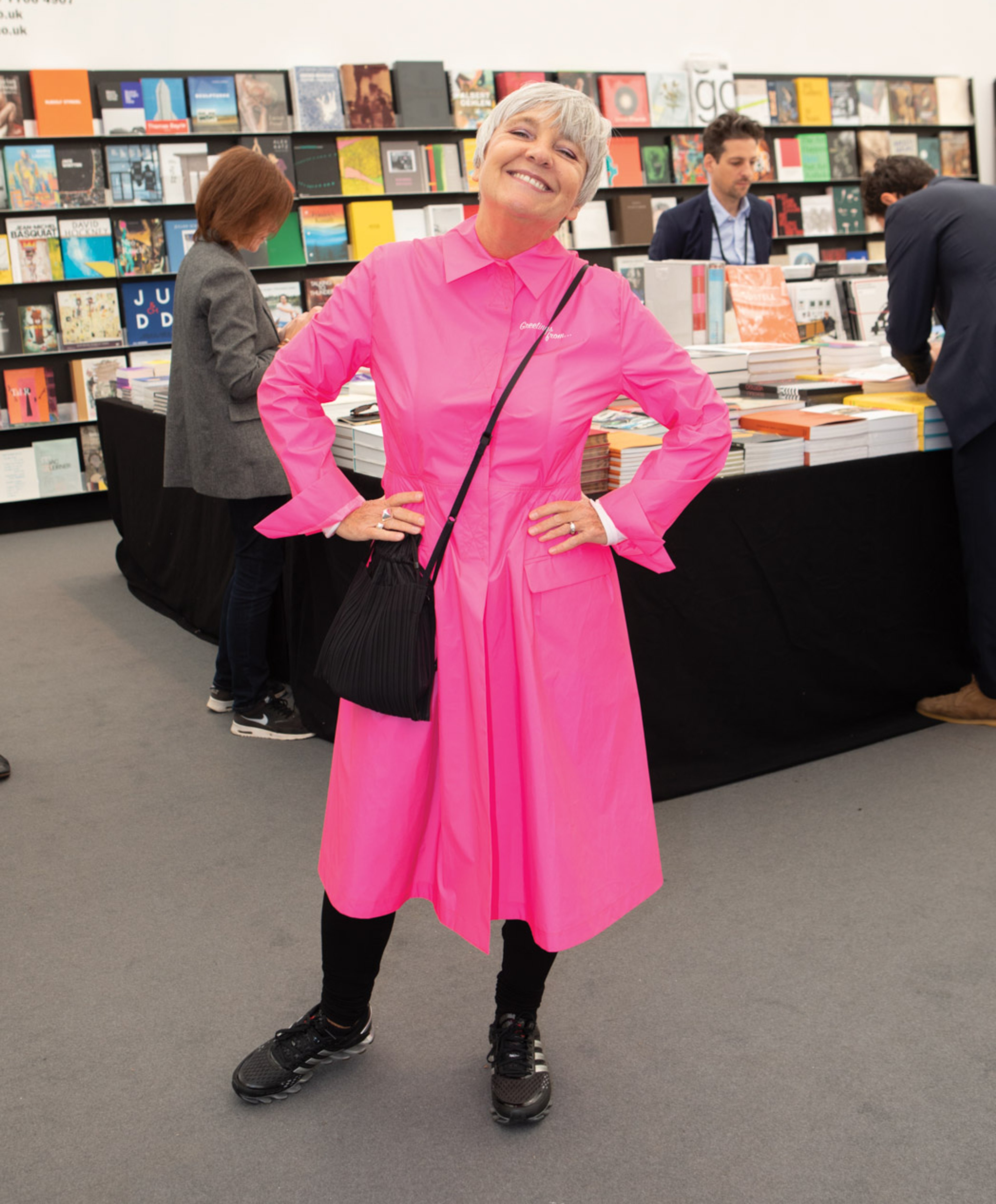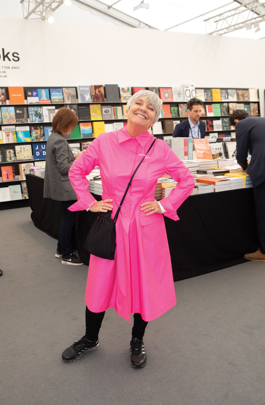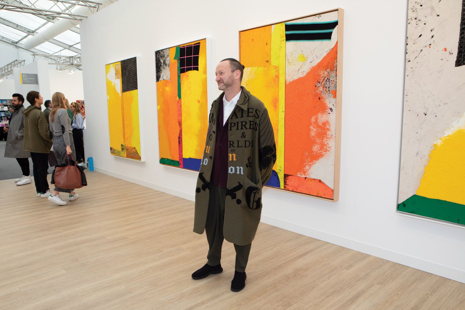 Perry was sporting a defiant “dad look” but with a “Frieze twist”, he said, which meant bright yellow Crocs, corduroys and a bespoke floral fleece. “You see women walking around in stilettos here and you think: you don’t collect art, do you? Or you collect very little.” But heels are getting rarer these days, he observed. “I think that’s great. For me, I’m a 59-year-old transvestite. I’m of an age when I can’t wear high heels anymore. If fashion goes in the direction where you can wear it with flats, I’m all for it.”