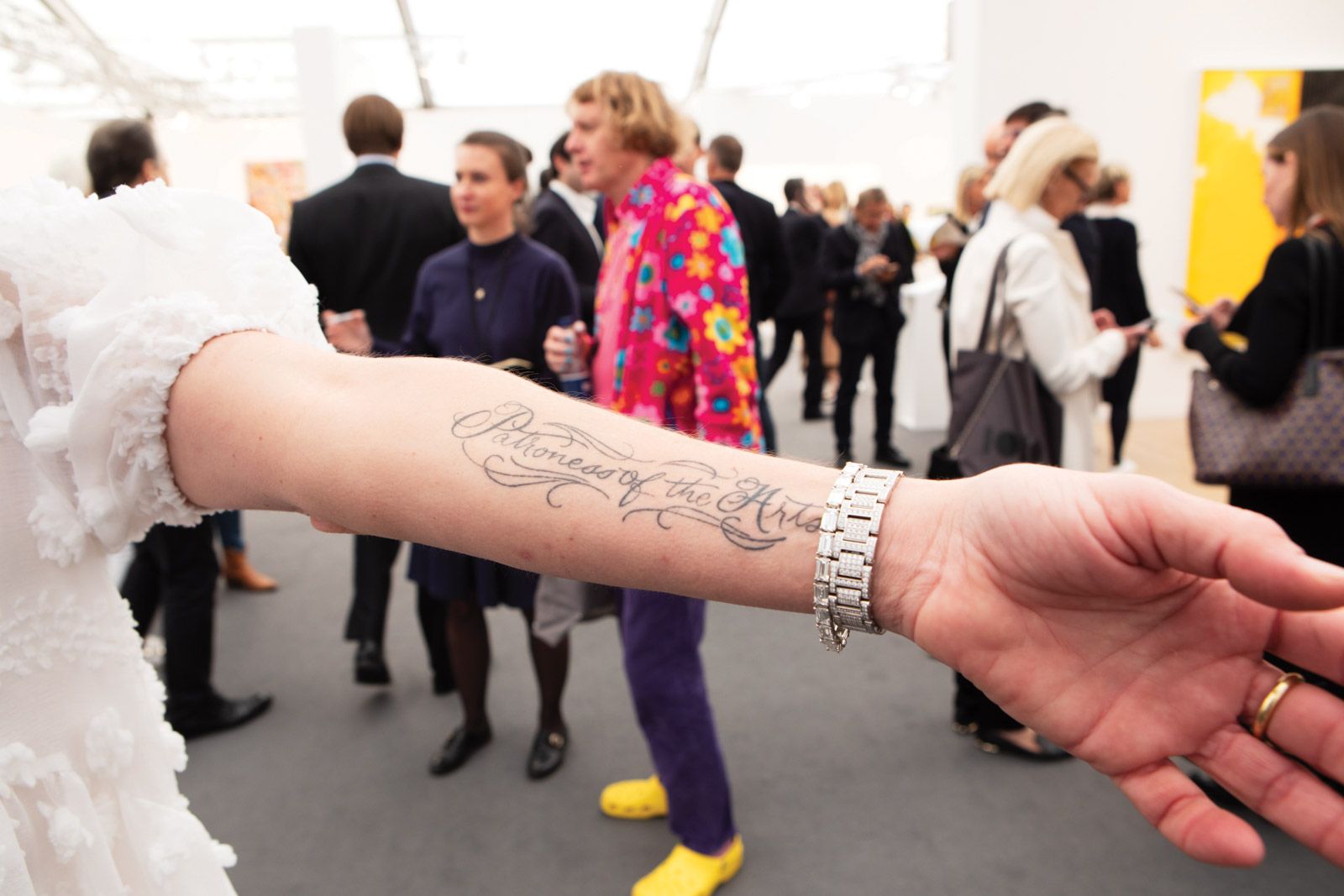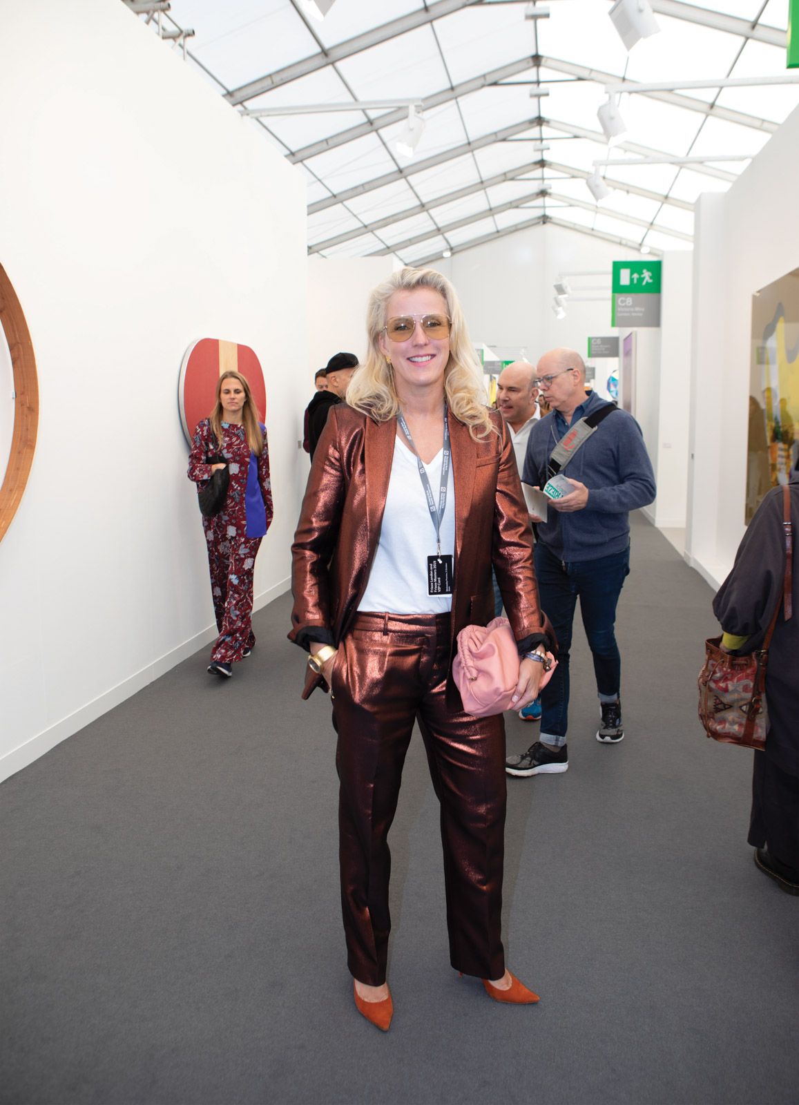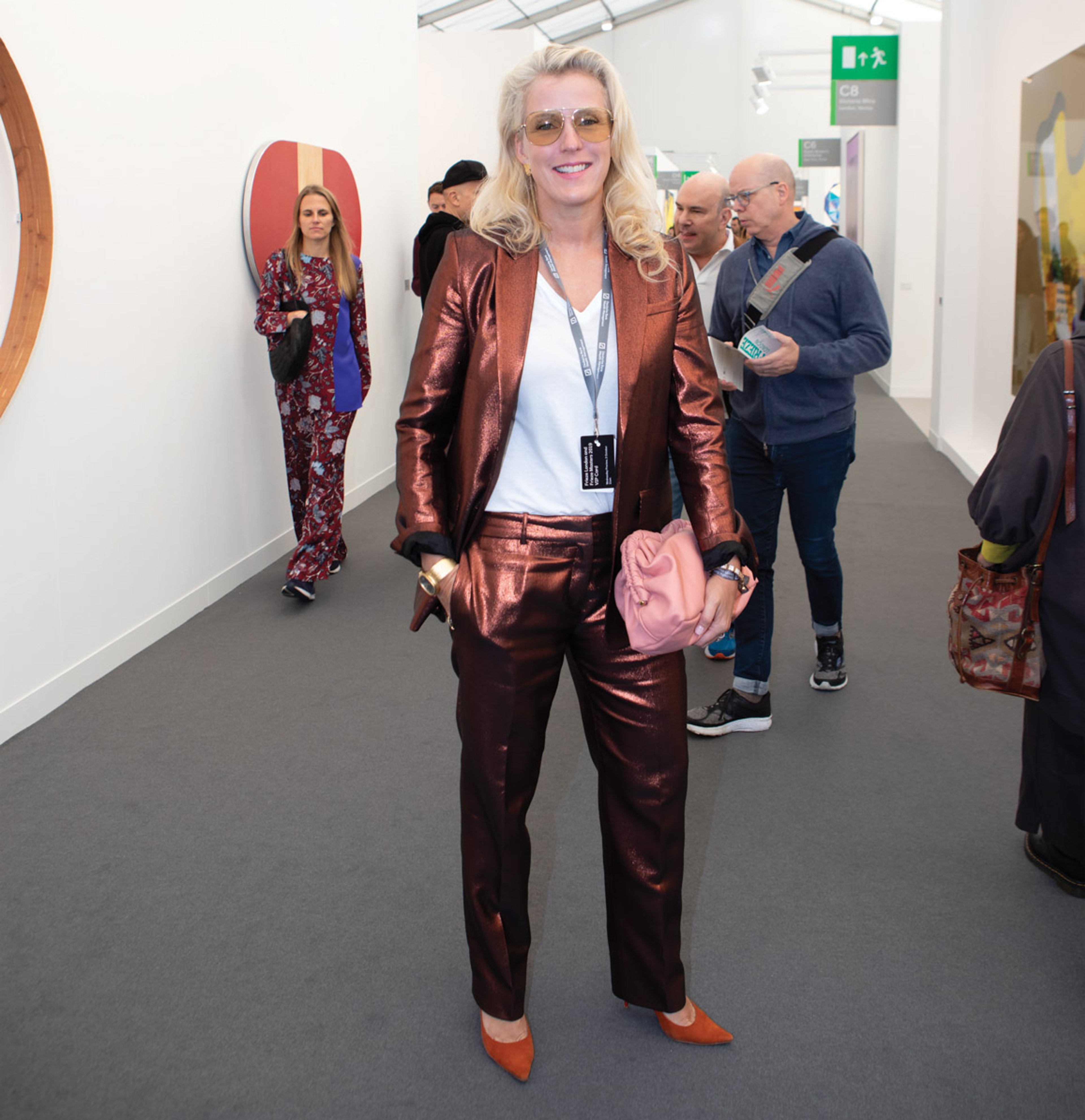 The “hot trainer” is definitely the way to go these days, he noted, but “art-world black” is still holding out. Here’s his pick of those who brought some extra flair to the fair this year.