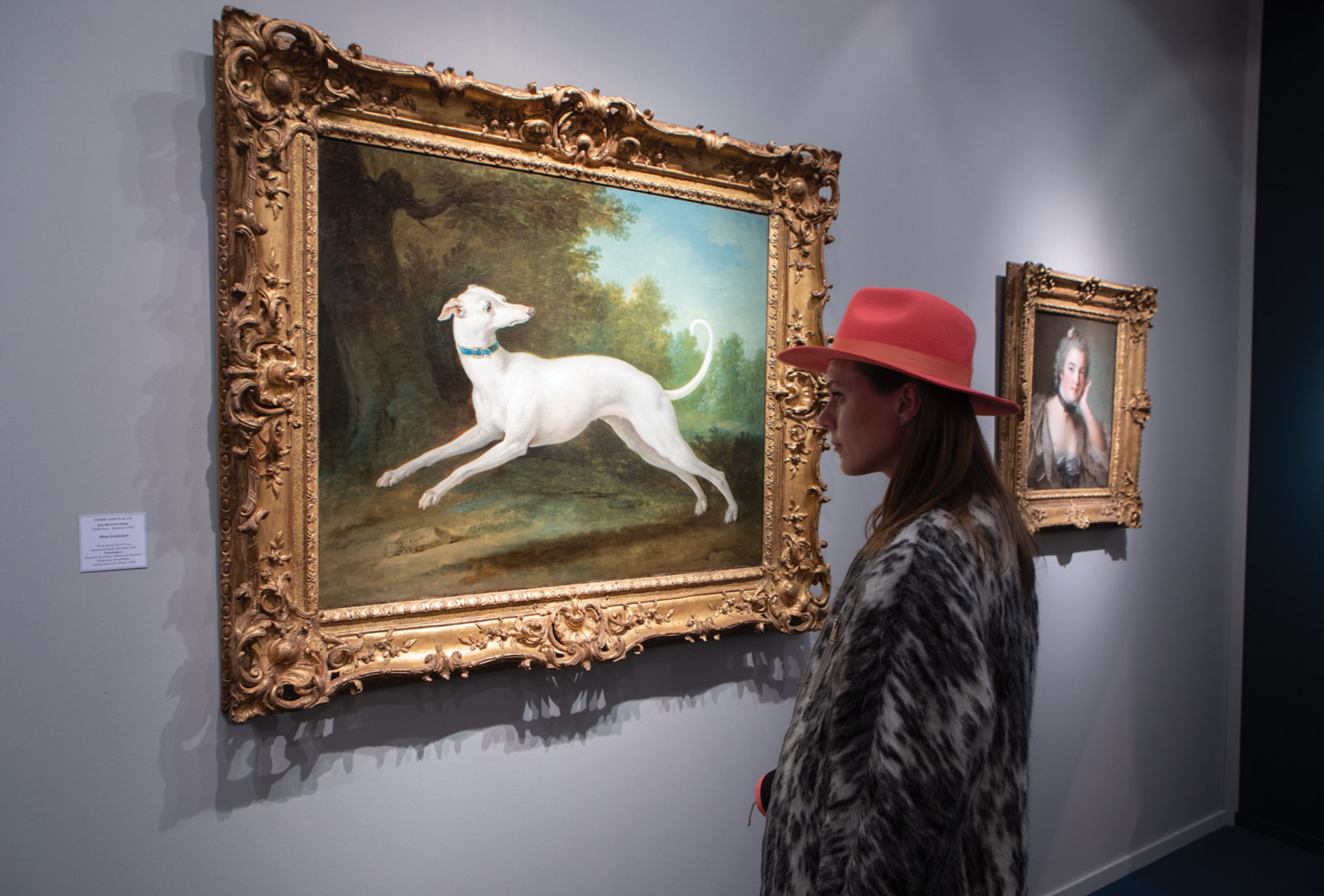 The 18th-century artist Jean-Baptiste Oudry famously painted Louis XV’s hunting dogs, often in the presence of the king himself. The portraits of the royal hounds all have the animal’s names—such as Misse or Polydore—inscribed beneath them in gold. This female hunting dog, though, in her sky-blue collar, does not have a name and her owner is unknown. The portrait is “not sentimental” so appeals to a wider range of collectors, according to a gallery spokesman. Jean-Baptiste Oudry, White Greyhound (1748), £250,000. Didier Aaron, Frieze Masters. Photo: © David Owens