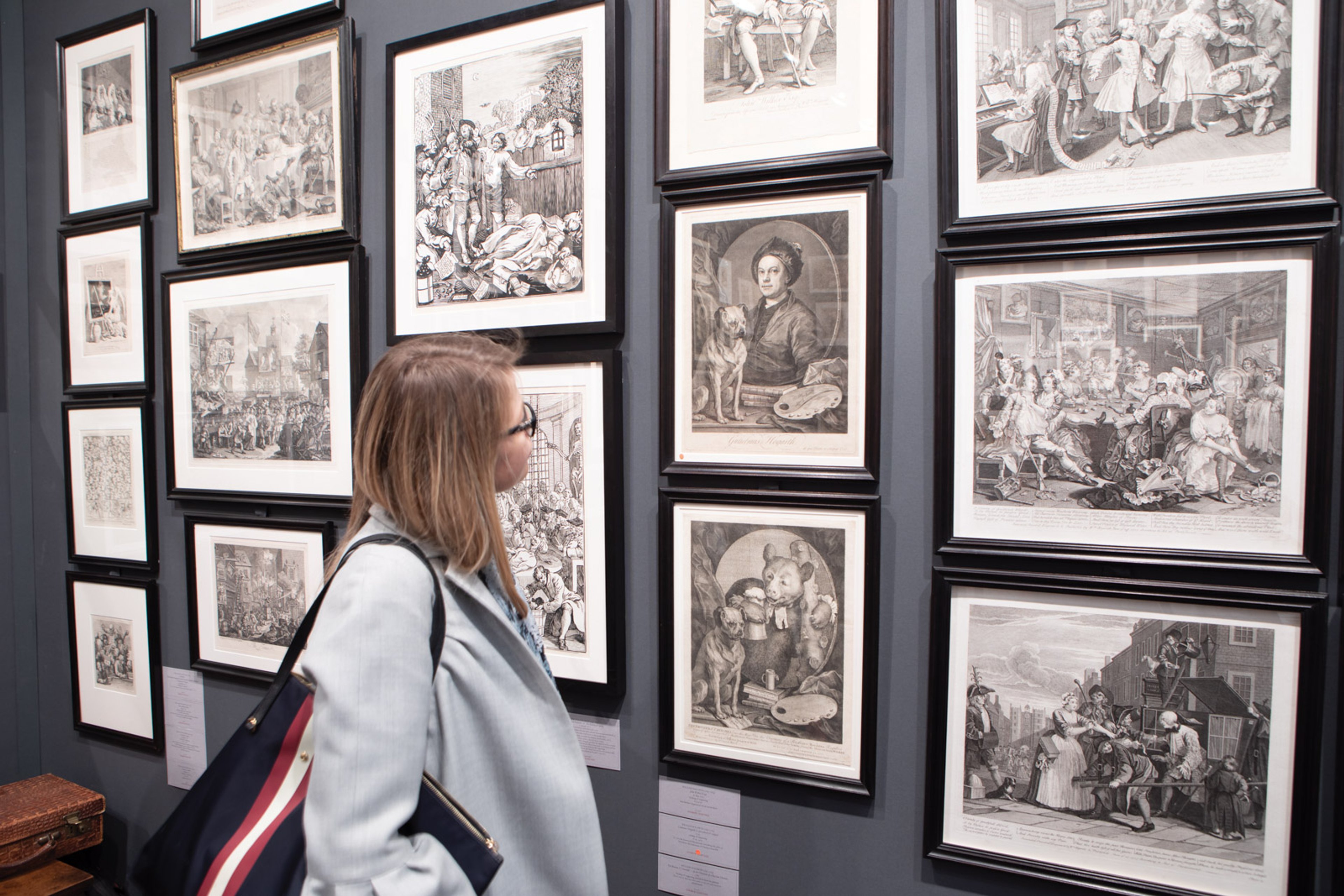 This Hogarth self-portrait with his pug called Trump is “very rare”, says the dealer Andrew Edmunds. After making the etching, Hogarth reworked the plate and replaced his likeness with the image of a bear named Bruiser in a work lampooning the satirist Charles Churchill. He also added in a few extra details—as he often would when reworking plates—including a stream of urine trickling down on one of the writer’s works. William Hogarth, Gulielmus Hogarth Se ipse pinxit & sculpsit (1749), sold for undisclosed sum; and William Hogarth, The Bruiser C.Churchill… in the Character of a Russian Hercules (1763), £1,200. Andrew Edmunds, Frieze Masters. Photo: © David Owens