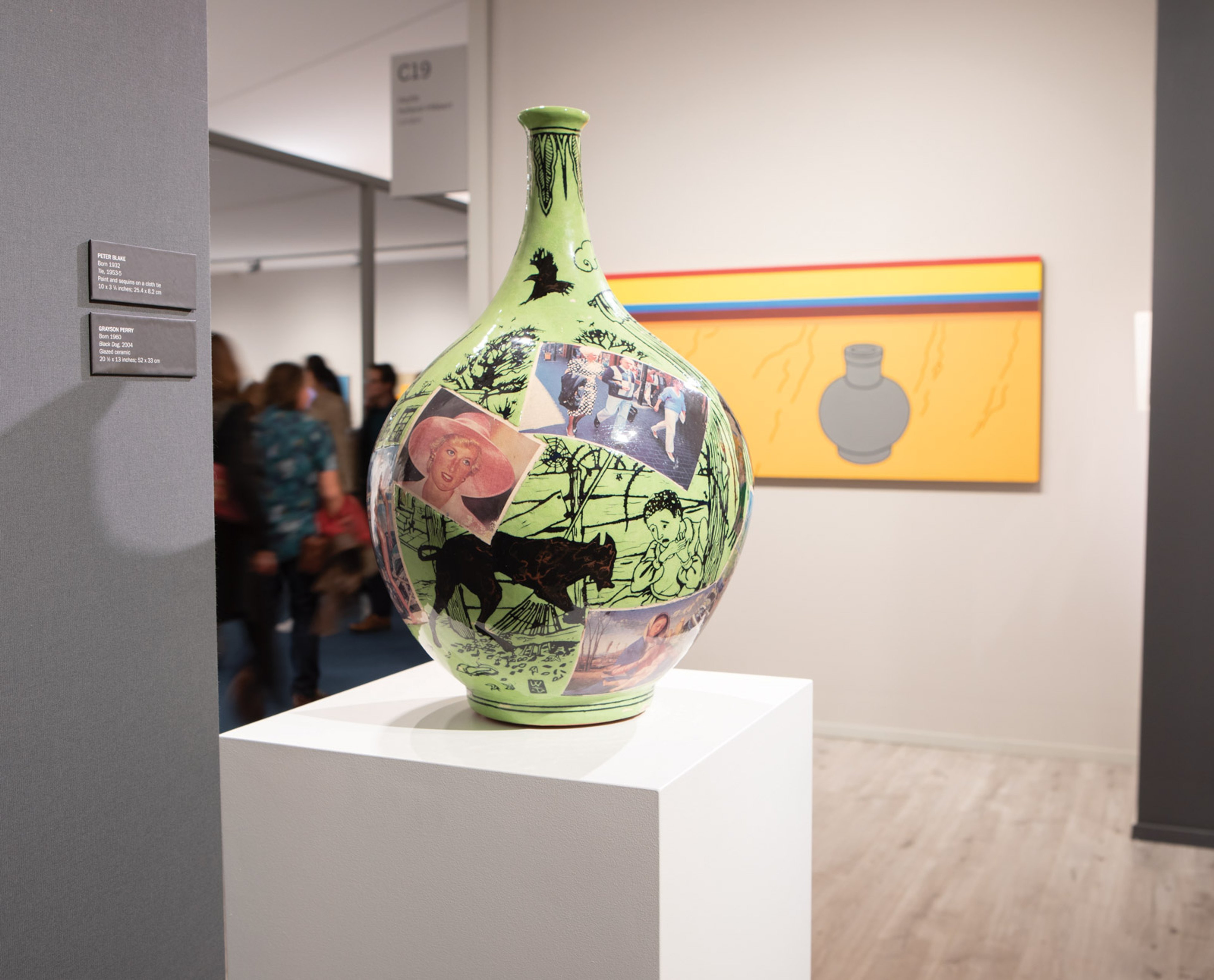 The term “black dog” to describe depression is usually associated with the former UK prime minister Winston Churchill but was used at least as far back as the 18th century by Samuel Johnson. Grayson Perry’s ceramic work of the same name is about the “roots of depression: emotional trauma and turmoil”, he said after completing it. The pooch on the pot was inspired by a childhood event when two dog walkers almost stumbled upon the young Perry experimenting with cross-dressing in an abandoned house. Grayson Perry, Black Dog (2004), £285,000. Hazlitt Holland-Hibbert, Frieze Masters. Photo: © David Owens