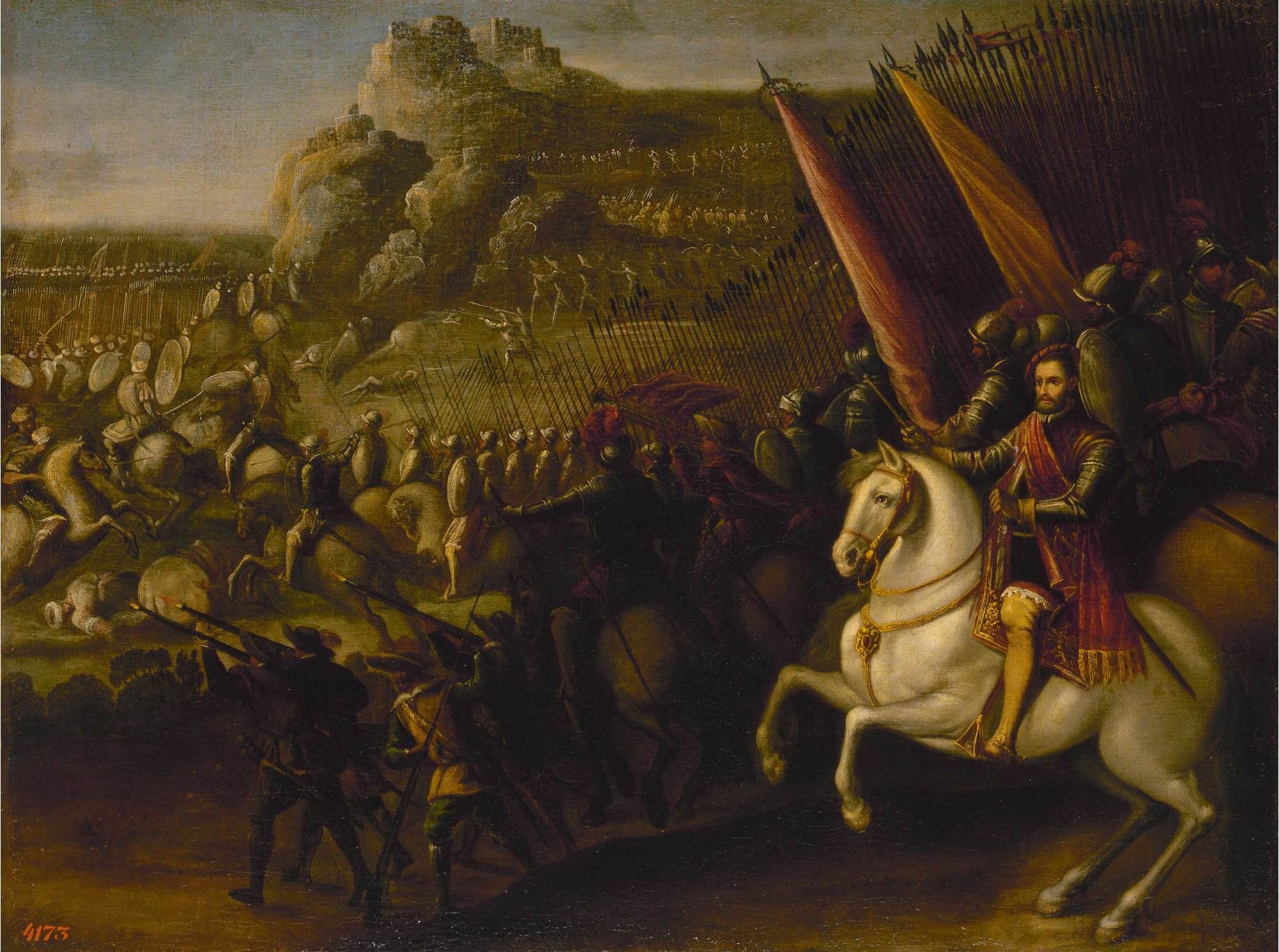But The Standard-Bearer is an anomaly in this show of the Dutch and Spanish schools of the 17th century in that he is alone. Every other Dutch picture, whether history painting, portrait or still life, is accompanied by a Spanish pendant. And yet, The Standard-Bearer is an apt introduction: emblematic of the great 17th-century painting that we encounter repeatedly—almost overwhelmingly—throughout, but also setting the historical context. Because the two nations were in conflict for most of the period being celebrated: the 80 Years War, in which the Protestant Dutch Republic battled for independence from the Catholic Kingdom of Spain, continued until 1648—for three-quarters of Velázquez’s life (1599-1660) and two-thirds of Rembrandt’s (1606-1669). Standard-bearers were seen as courageous heroes, leading the troops into battle and thus at the greatest risk of death. They had to be bachelors, so that they would not leave widows and bereaved children. The figure’s precarious existence is there in Rembrandt’s painting: for all his finery, his pomp, his pride, look into his eyes and you see vulnerability and weariness. And in this, too, it is a symbolic picture: a vivid realism—much of it clearly indebted to Caravaggio, the show’s absent presence—is the unifying quality of the art of these warring nations.