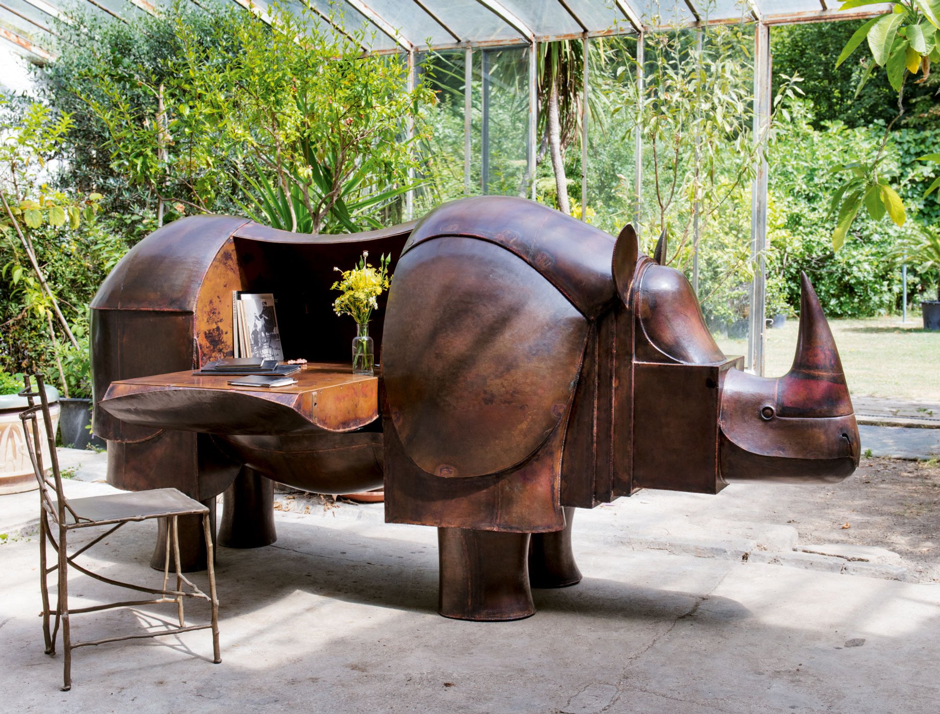 Rhinocrétaire (Rhinodesk, 1991), a copper and metal rhinoceros by François-Xavier which transforms into a writing desk, was the top lot, fetching €5.4m ($6m; est €700,000-€1m). According to our sister publication, The Art Newspaper France, bidding started at €1m with the New York-based billionaire Mugrabi raising this to €2m. Antoine Arnault, the son of the luxury goods magnate Bernard Arnault, was also an underbidder. Mugrabi failed to buy the rhino but purchased two pieces, including Ane de Natalie (2007), a writing bureau in the shape of a donkey, for €1m (est €300,000-€400,000).