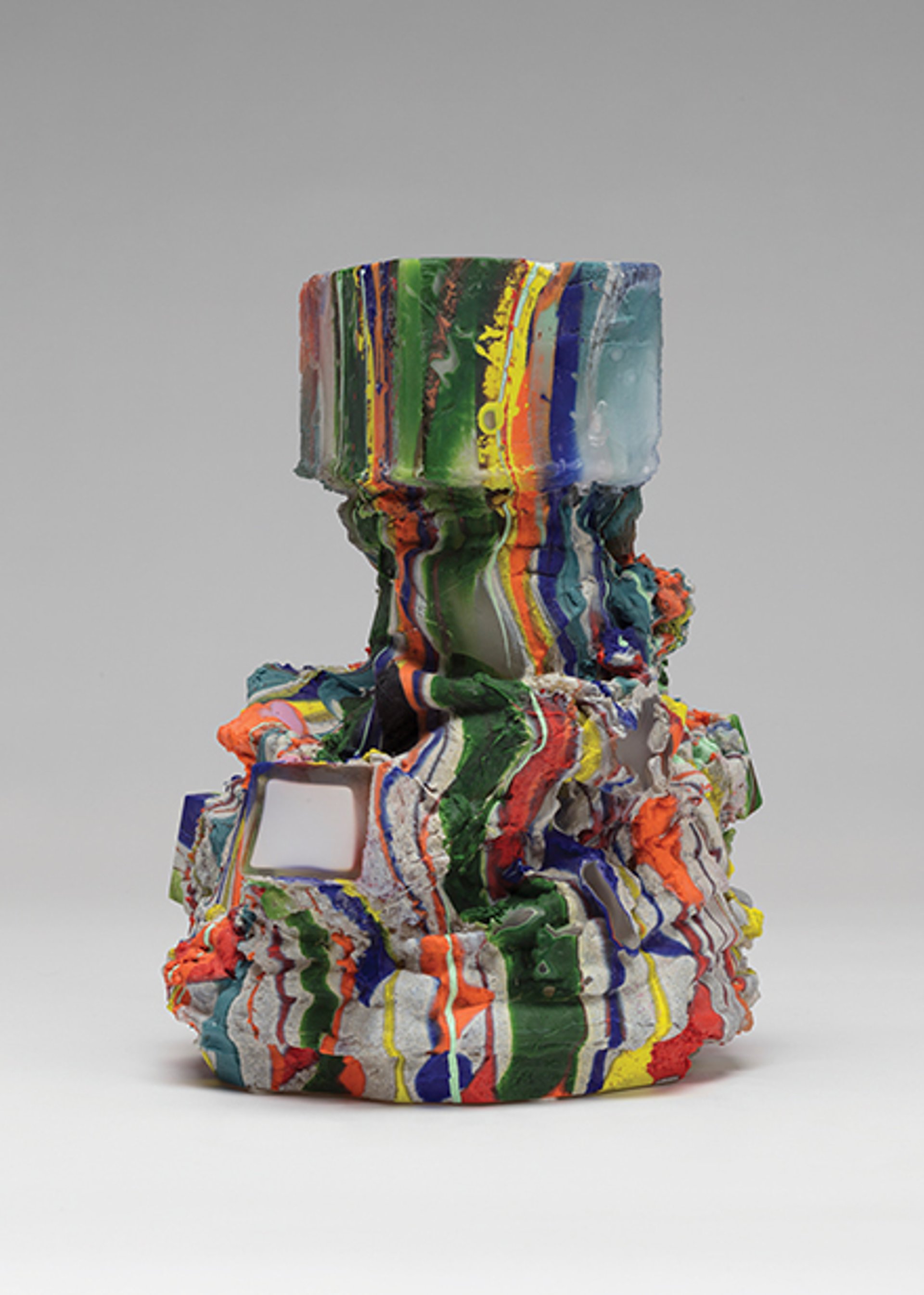 Thaddeus Wolfe’s molten, multi-coloured Untitled (2019) at Pierre Marie Giraud’s stand at Design Miami Courtesy of Pierre Marie Giraud