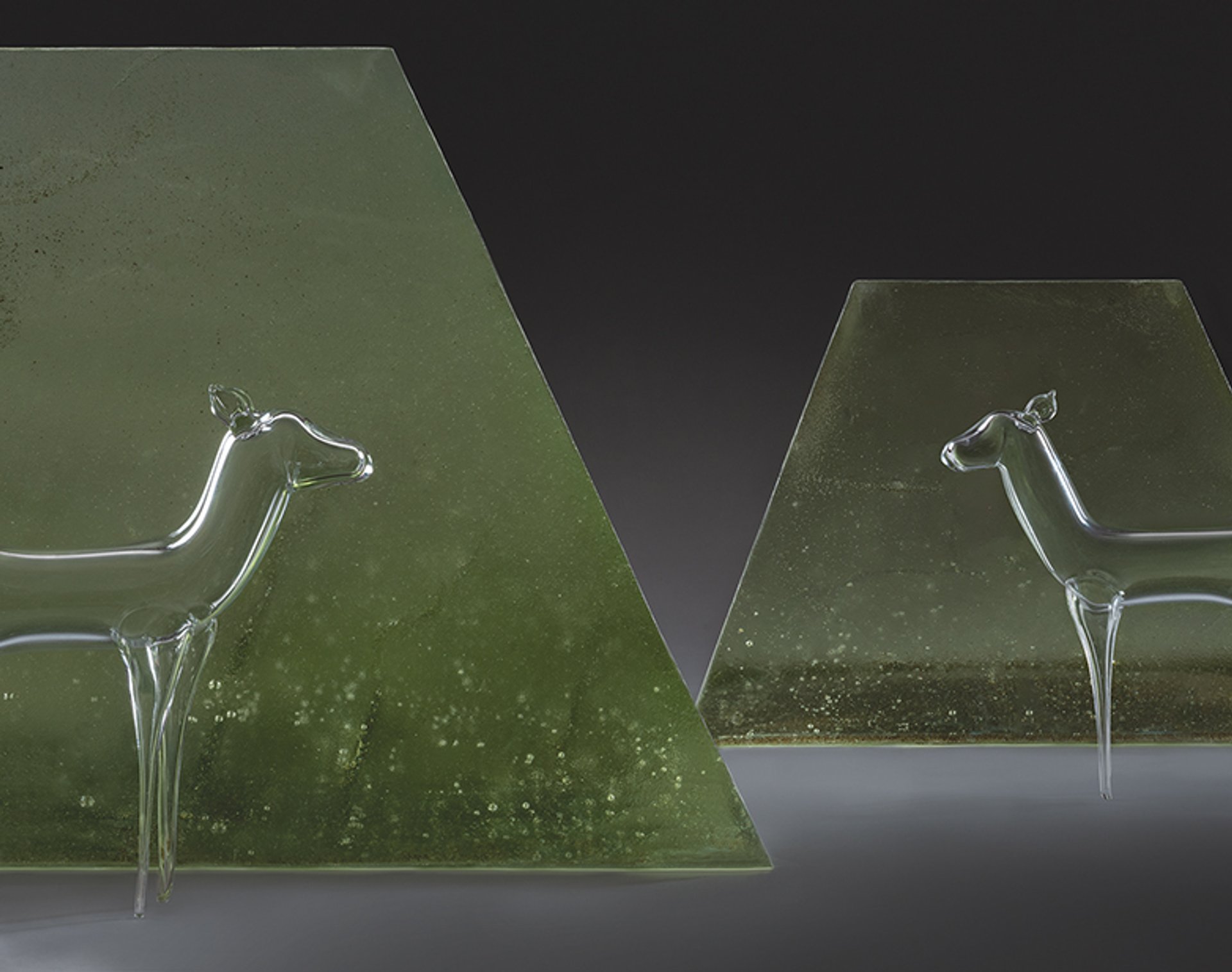 Robert Wilson is a surprising presence at the 15th edition of the Design Miami fair. Admittedly, the 78-year-old American’s artistic practice is a broad one, running the gamut from theatre and spectacle to sculpture and film. But who knew it would one day lead to this silicon wonderland—an exquisite installation of delicate glass deer that meander through a landscape of chunky glass truncated pyramids.