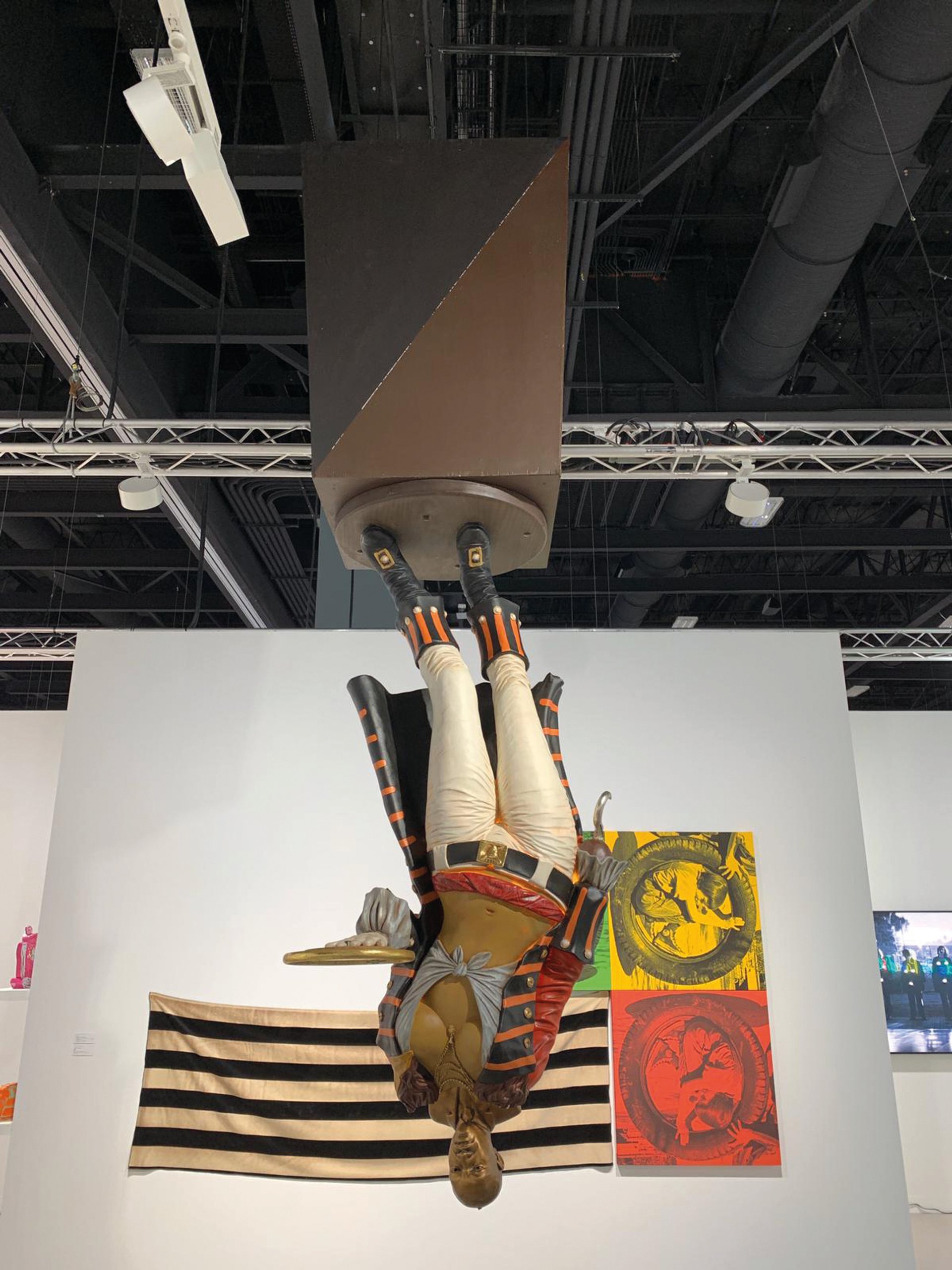 A pirate wench with the head of Martin Luther King Jr hangs upside-down from the ceiling, her bosom partially exposed, on the stand of Mitchell-Innes & Nash at Art Basel in Miami Beach. The ghostly figure also leaks a chocolate substance mixed with the paint thinner Floetrol. Altogether, the statue A Vessel in a Vessel in a Vessel and So On (2007), by the artist Pope.L, is a comment on the toxicity of black stereotypes. The technician who installed the eye-popping creation says that the dangerous-if-consumed liquid seeps out for three seconds at a time. Best to seek refreshments elsewhere.