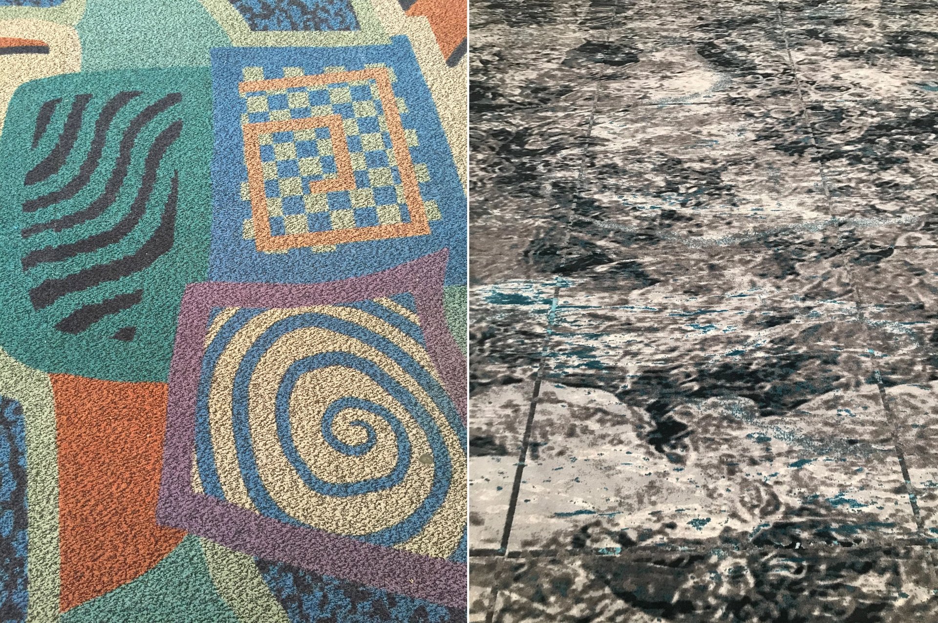 Old and new: the Miami Beach Convention Center carpet before (left) and after the renovation
