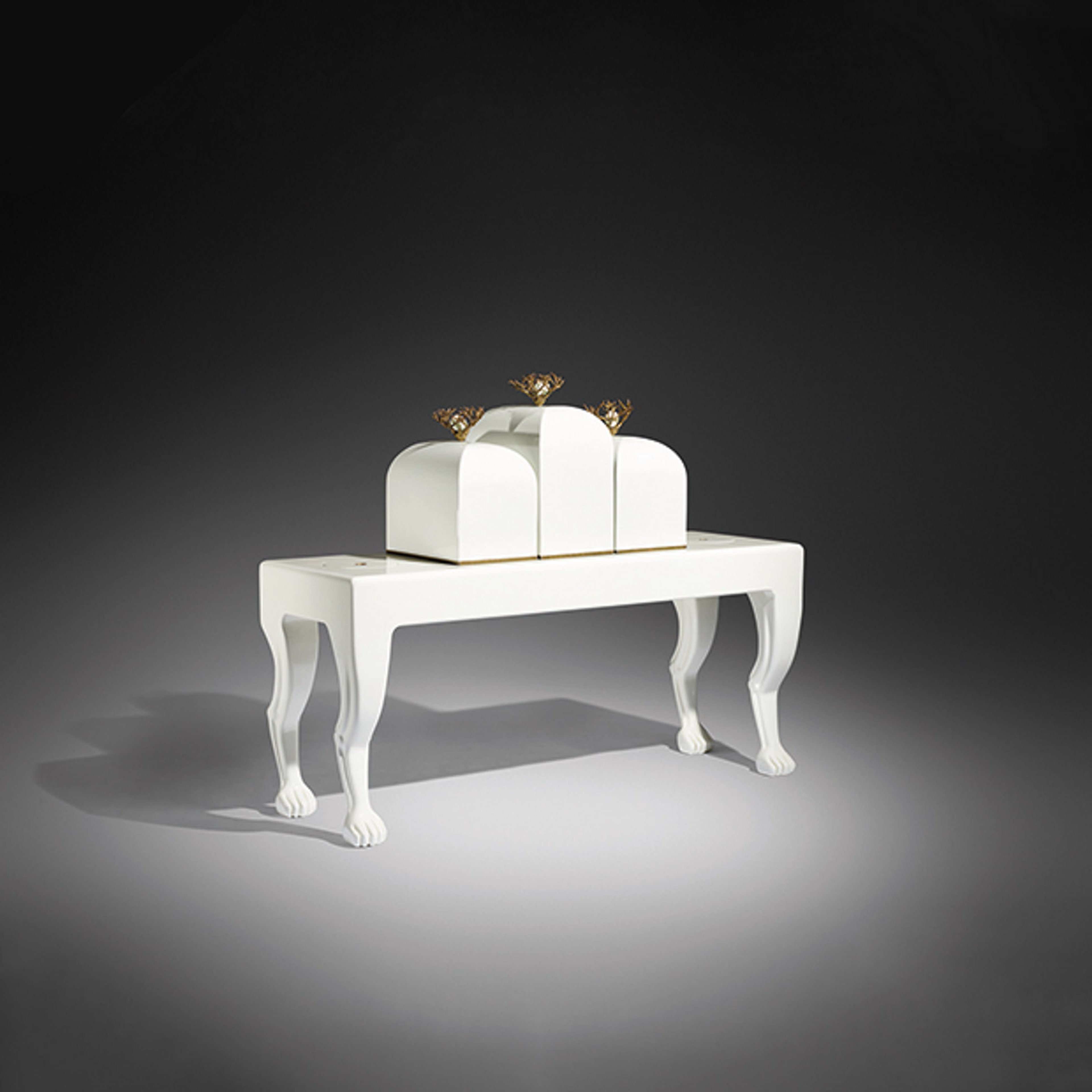 The late US designer John Dickinson knew how to imbibe in style. He rose to fame in the 1970s for his fun but functional furniture designs such as this gel-coated, fibreglass and brass console, which appropriates the claw-and-ball feet of antique furniture and features two removable ice buckets. The piece was devised for his private residence in San Francisco, a converted firehouse that doubled as his showroom. There is another version of this bar console in the San Francisco Museum of Modern Art, where it was shown in 1974 in the Art of Wine exhibition. John Dickinson, bar console for the Firehouse, San Francisco (around 1974) Important Design, Wright, Chicago, 10 December Estimate $30,000-$50,000