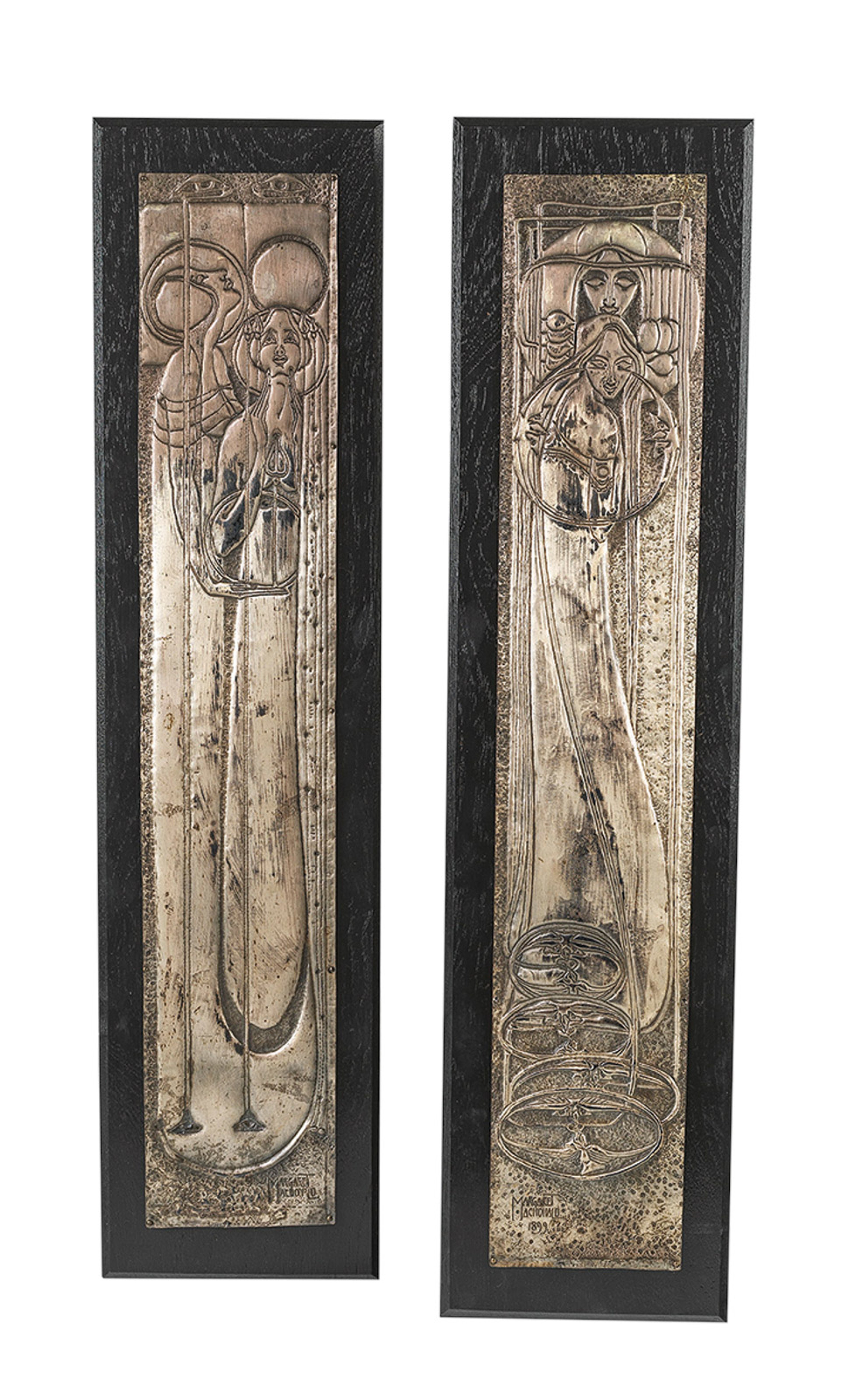 The Scottish Art Nouveau artist Margaret MacDonald made this pair of silver-plated reliefs for a smoking cabinet designed by her husband Charles Rennie Mackintosh, which was exhibited in the “Scottish Room” at the Eighth Secession Exhibition in Vienna in 1900. The cabinet was bought by Hugo Henneberg, a Wiener Werkstätte customer, but later disappeared—a 1977 article in the Burlington Magazine states: “It has, unfortunately, not been possible to discover where the Henneberg cabinet is today.” However, says Dorotheum’s specialist Magda Pfabigan, the reliefs reappeared when a Viennese collector—who had owned them since 2003—consigned them to auction. Margaret MacDonald, Day and Night reliefs (around 1900) Art Nouveau and 20th-century Arts and Crafts, Dorotheum, Vienna, 11 December Estimate €40,000-€80,000