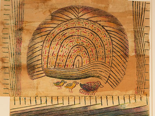 KAWS, known for his early cartoon influenced street art that has growing into a booming art practice of painting, sculpture and other media, is a long-time collector of Outsider art, a focus of the museum, and owns works by Martín Ramírez, Henry Darger, Joe Coleman, and William Edmondson. Although he did not grow up with art at home, “unless you count paintings of the woods”, he told us earlier this year, “collecting was ever present, if not conscious”.
