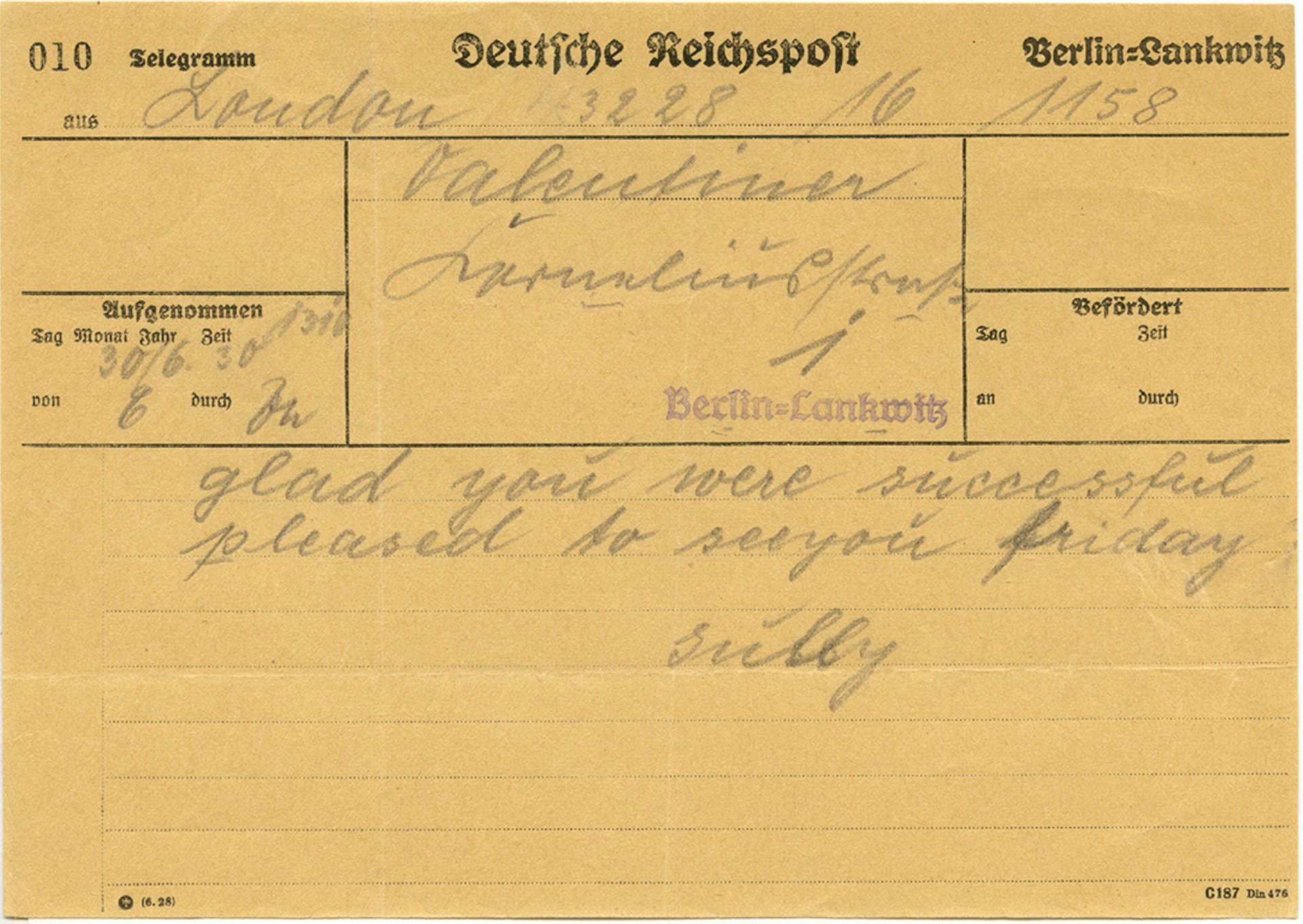 A telegram congratulating Wilhelm R. Valentiner of the Detroit Institute of Arts on the 1930 purchase of The Wedding Dance Detroit Institute of Arts