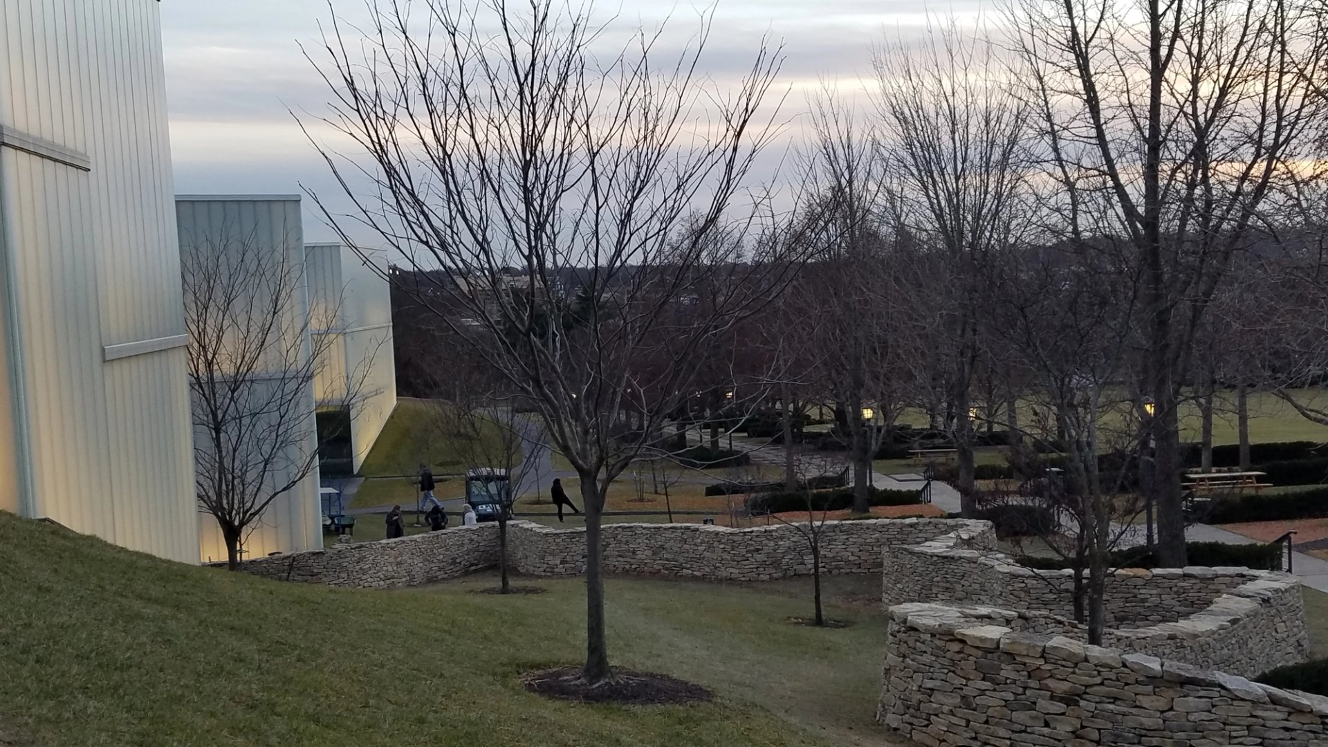 A wall that walks? Just what did that mean? Among other things, his project is meant to resonate with the deep geological and cultural history of place. The limestone originated beneath the vast inland sea that once covered the region. Outstate farmland, as well as Kansas City’s urban streetscape, and, indeed, the museum’s grounds, dating to the 1930s, are lined with low-lying, limestone boundary walls.