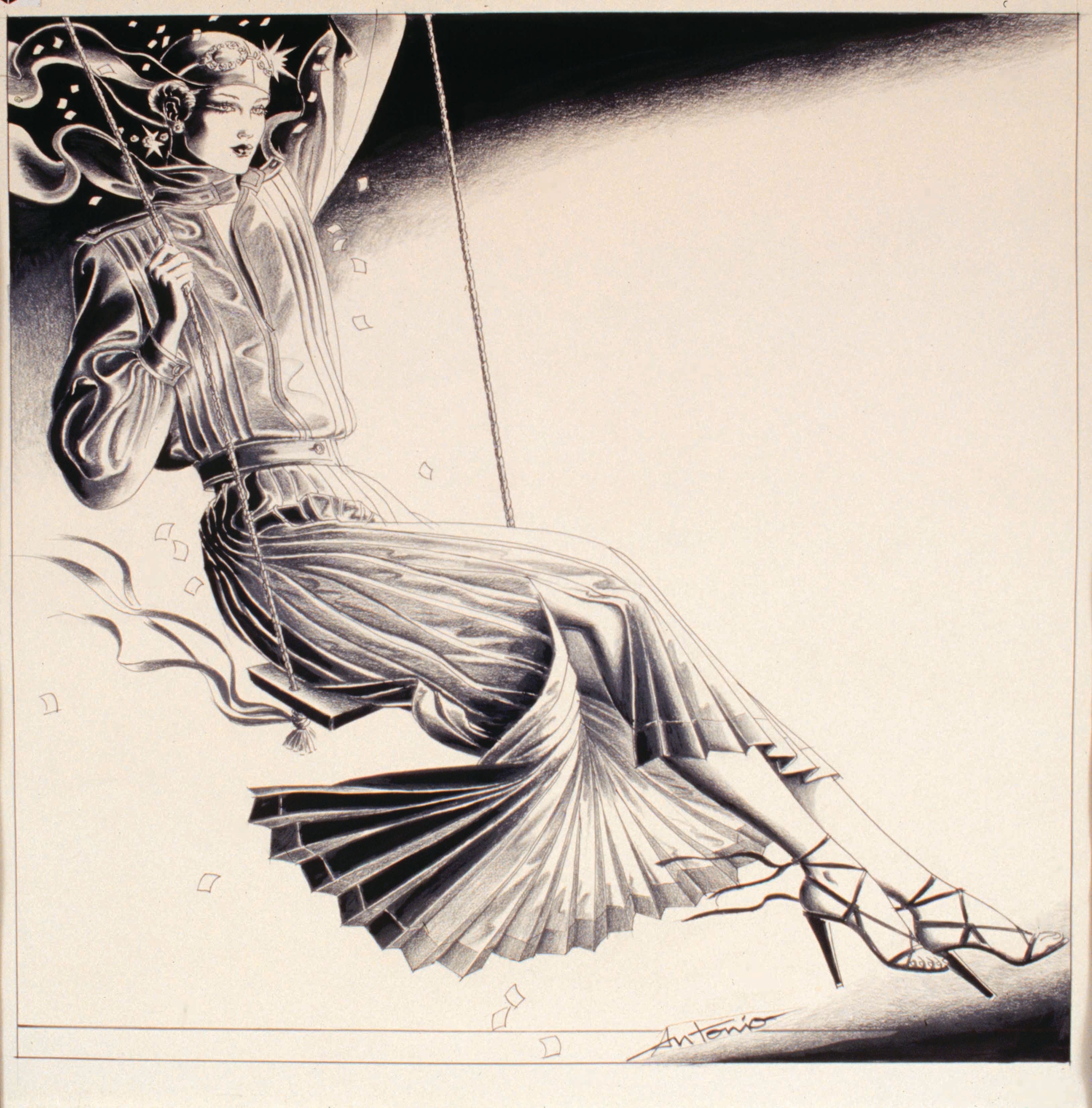 The exhibition includes 63 examples dating from the 1920s to today by artists such as Harvey Boyd and René Bouché, known for his works in Vogue in the 1950s. Works on show also include Carl (Eric) Erickson’s portrait of the Comtesse de Munoz (1928), and Antonio Lopez’s depiction of the aviator Amelia Earhart made in 1978 for Bloomingdales's advertising.