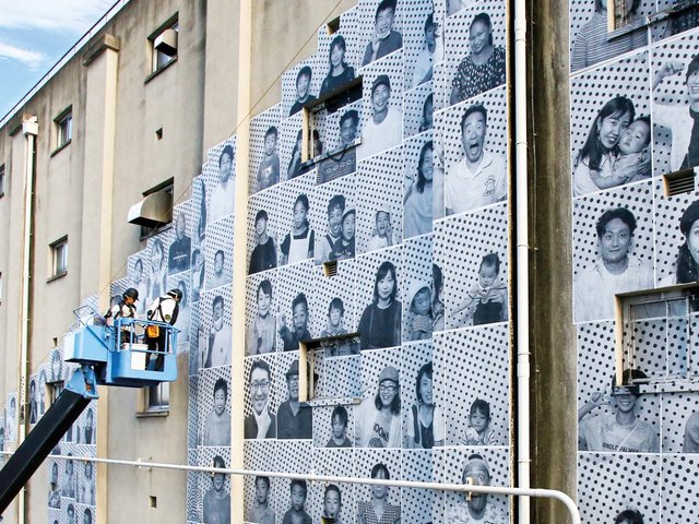 To realise the project, Wodiczko partnered with the Refugee Council USA and Integrated Refugee & Immigrant Services, recording interviews with people who were displaced by civil wars in Africa, Central America, South Asia, and the Middle East. In the final 30-minute looping work, the participants share their own experiences of upheaval and relocation, their images superimposed on top of a memorial to the American Civil War.