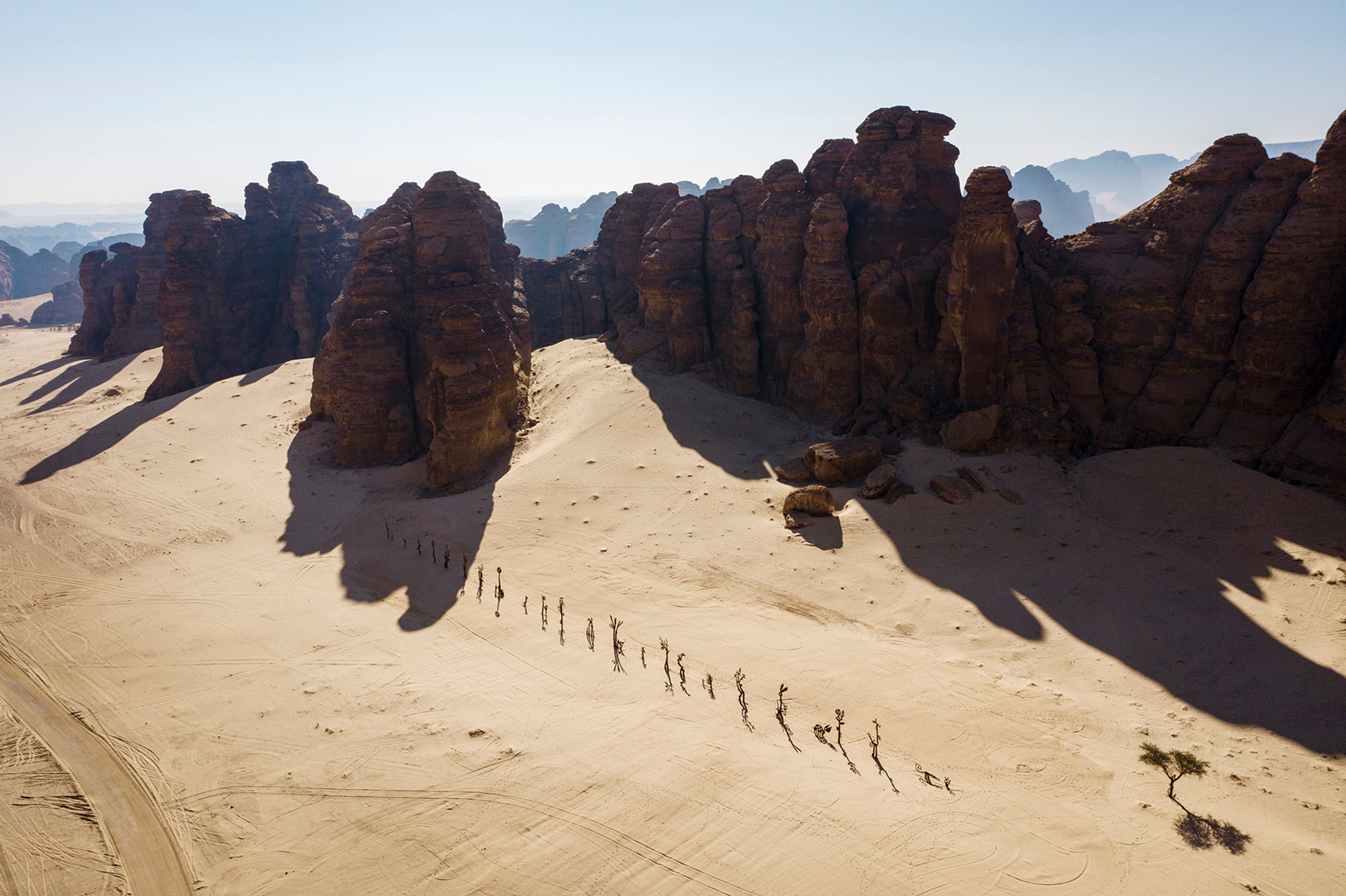 The Desert X sculpture biennial initially launched in the Coachella Valley in California in 2017. The curators of the new version include the founding Desert X director Neville Wakefield, along with Raneem Farsi and Aya Alireza, both from Saudi Arabia. Desert X AlUla has been organised in collaboration with the Royal Commission for AlUla, the Saudi governmental body led by Crown Prince Mohammad bin Salman.