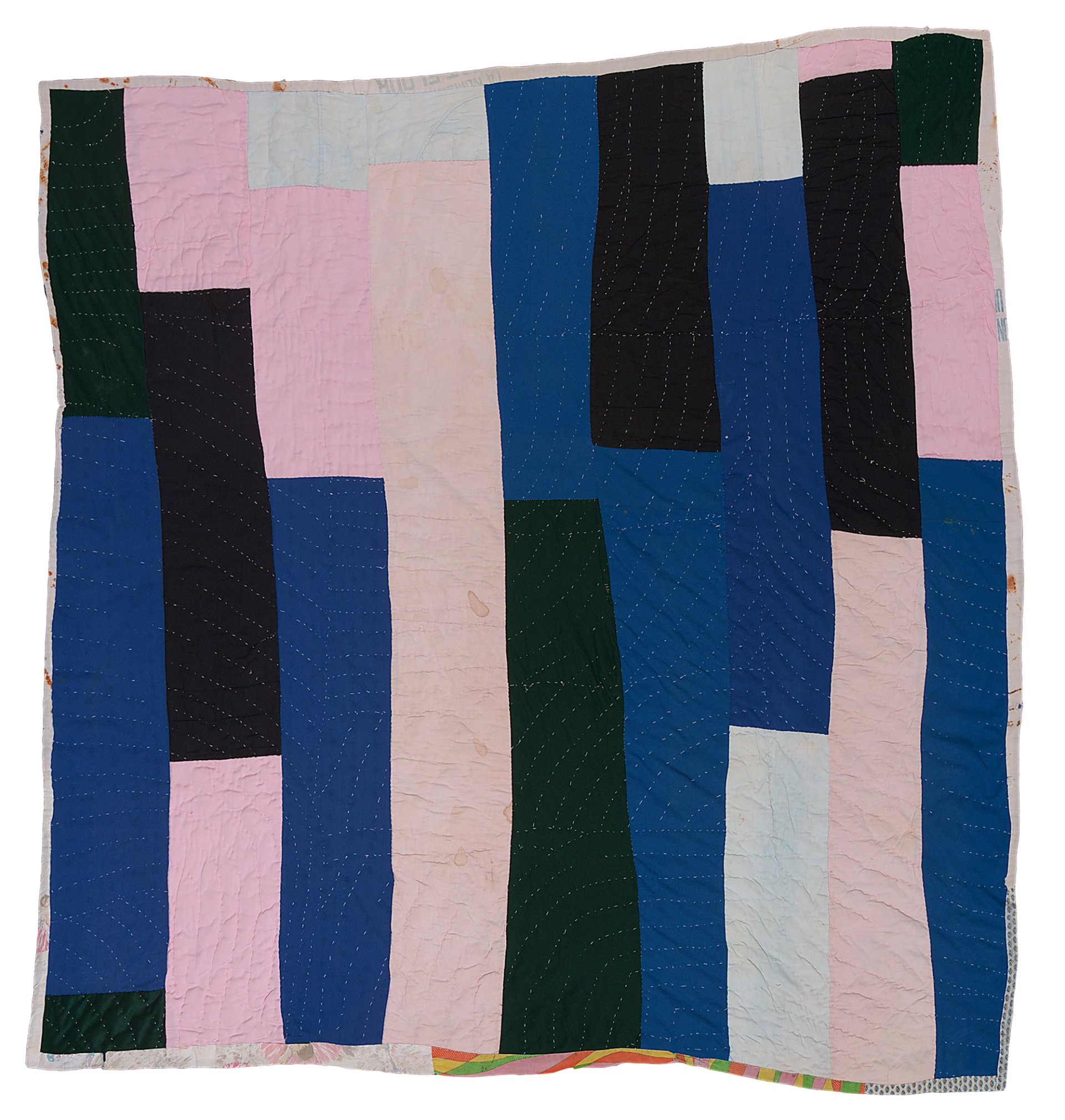 Such salutary artistry encompasses the work of Bill Traylor, who was born into slavery and spent his last years living on the streets of Montgomery, Alabama, painting and drawing on scraps of paper until his death in 1949. It can also be found in the work of Bessie Harvey, who sculpted dramatic apocalyptic visions from tangled tree roots in Alcoa, Tennessee. We see how Hawkins Bolden from Memphis, despite being blind from the age of eight, spent his long life assembling scarecrows, guardian figures and abstract assemblages from broken furniture, carpet scraps and discarded kitchenware. The musician, artist and gravedigger James Son Ford Thomas modelled skull heads from the clay of the Yazoo River, complete with pebble—and sometimes real—teeth. Then there’s the room of striking abstract quilts stitched by several generations of women from Gee's Bend in Alabama using recycled cloth, including worn out blue jeans and mattress ticking, which is an exhibition in its own right. Gee's Bend quilts have featured on American postage stamps yet, like so much of the work in this show, they are barely known outside the US.