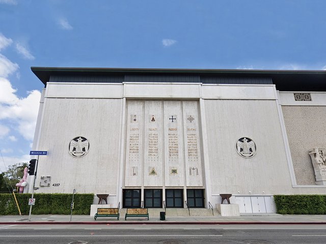 Last spring, I visited the Marciano Art Foundation (MAF) in Los Angeles. Marble and travertine-clad, the virtually windowless edifice on Wiltshire Boulevard boasted mosaic panels and larger-than-life statues of gods, US presidents and Masonic figures along the street side. In the impeccably maintained forecourt (they called it a “sculpture garden”) were works by Ugo Rondinone and Franz West. The building was formerly a Scottish Rite Masonic Temple, built in 1961 with epic capacity: a dining hall for 1,500, a 2,000-seat auditorium. But dwindling membership eventually caused it to be abandoned, and it was one of the city’s most notorious real-estate white elephants until it was bought in 2013 by Maurice and Paul Marciano.