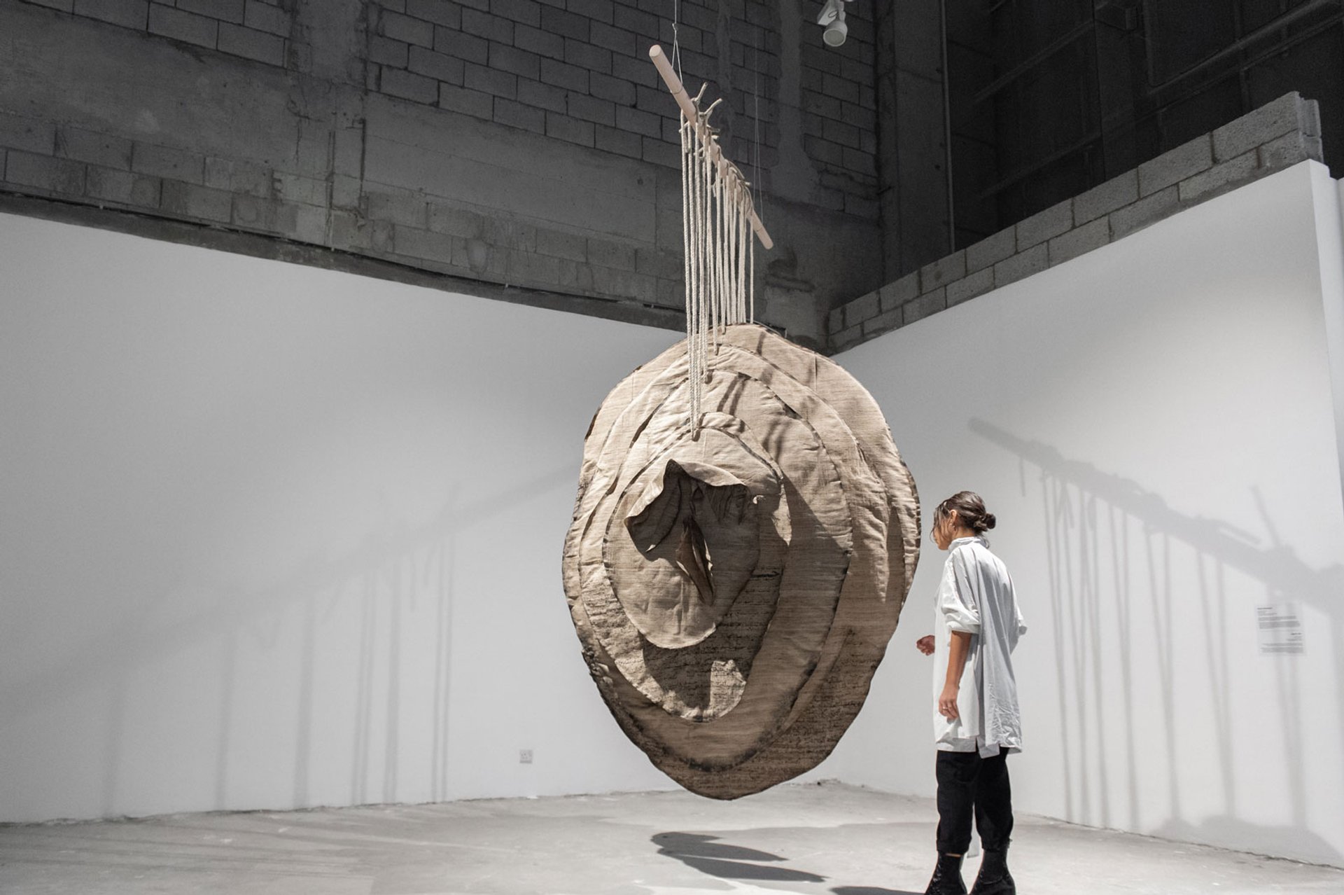 The works by the 21 predominantly local and regional artists took in a broad spectrum of media and forms, from desert sand to textiles, investigative documentation and video installation. Multimedia and video dominated, more traditionally-inspired paper and textile pieces featured too, most notably from Manal al Dowayan, whose Ephemeral Witness was a striking assertion of feminist empowerment, while the gorgeous, intricate assemblage of paper, calligraphy and traditional fabrics of Farah K Behbehani’s installation Rahal blended traditional and progressive ideas with dramatic finesse.